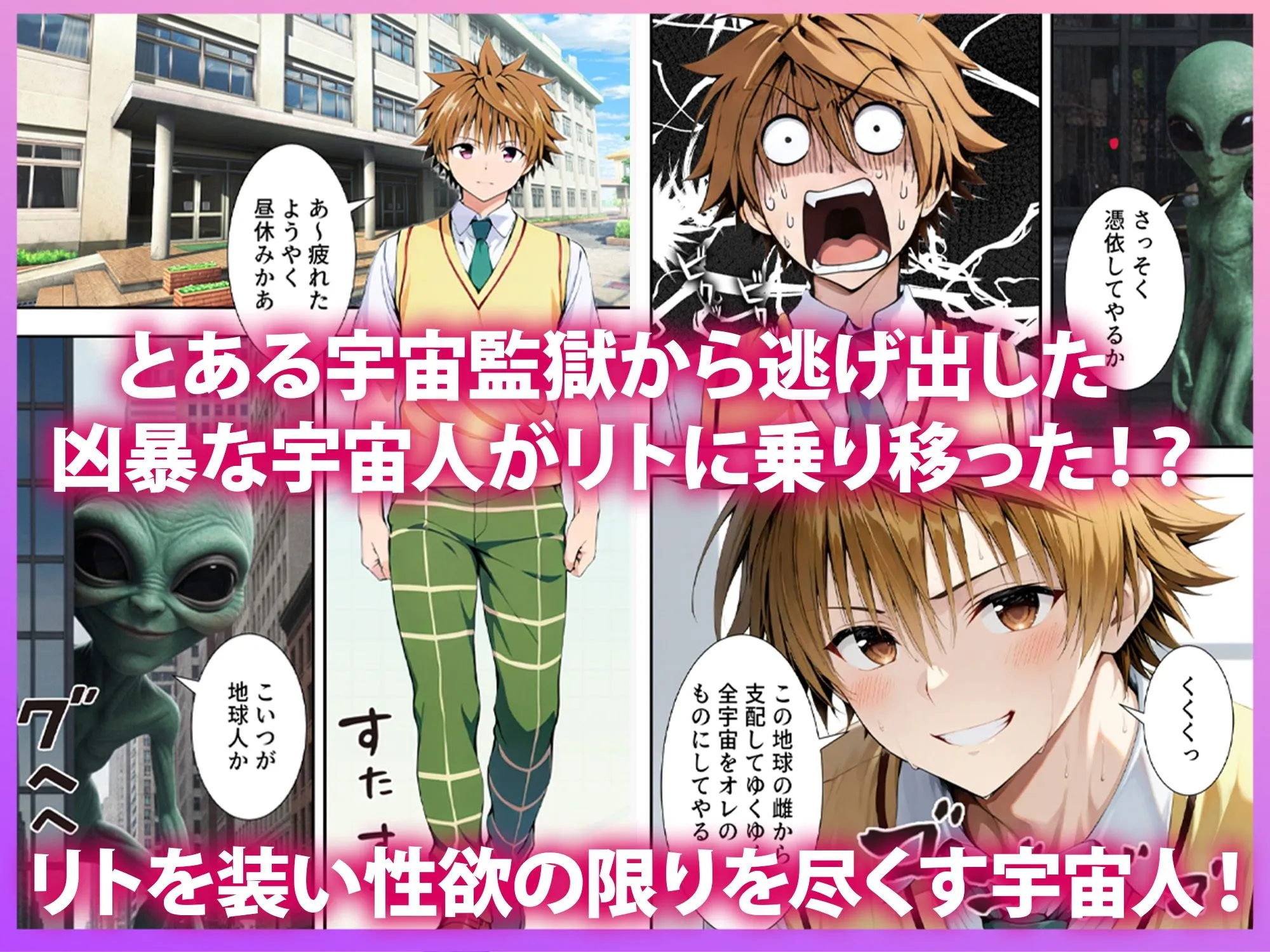 【ストーリー】とある銀河の監獄から非常に凶暴な宇宙人が脱走した!生き物に乗り移り性欲の限りを尽くすその宇宙人は地球に降り立ち、なんとリトに乗り移り、出会うヒロイン達を次々と犯していく…!!【構成】★モ〇編:P1-P13いつもと様子が違うことに違和感を感じながらも、リトの迫られ絶頂潮吹き、中出しを受け入れる!!★古〇川編:P14-P22宇宙人の淫乱フェロモンで古手川がハレンチに!?パイズリ・挿入懇願とドンドン乱れていく古手川!!★西〇寺編:P23-P33偽物のリトとは思わずリトに迫られたと喜びSEX!積極的にちんこと精子を求めていく!!★ヤ〇編:P34-P42最強殺し屋のヤミだが、宇宙人のフェロモンは想像を絶する効力だった!淫力に抗えずえっちい気分になっていく…!!★み〇ん編:P43-P55凌●の魔の手は○○妹まんこにまで。妊娠必至の大量種付けされてしまう!!——————————■作品情報・全フルカラーコミック・セリフ付:55ページ・ファイル形式:JPEG■注意事項・本作はStableDiffusionを使用したAI生成画像を加筆・修正した作品です。・AI生成のため、画のタッチや細部に若干の不自然さがある場合があります。・登場人物は全員20歳以上の成人です。・犯罪や違法行為を美化・助長する意図はありません。