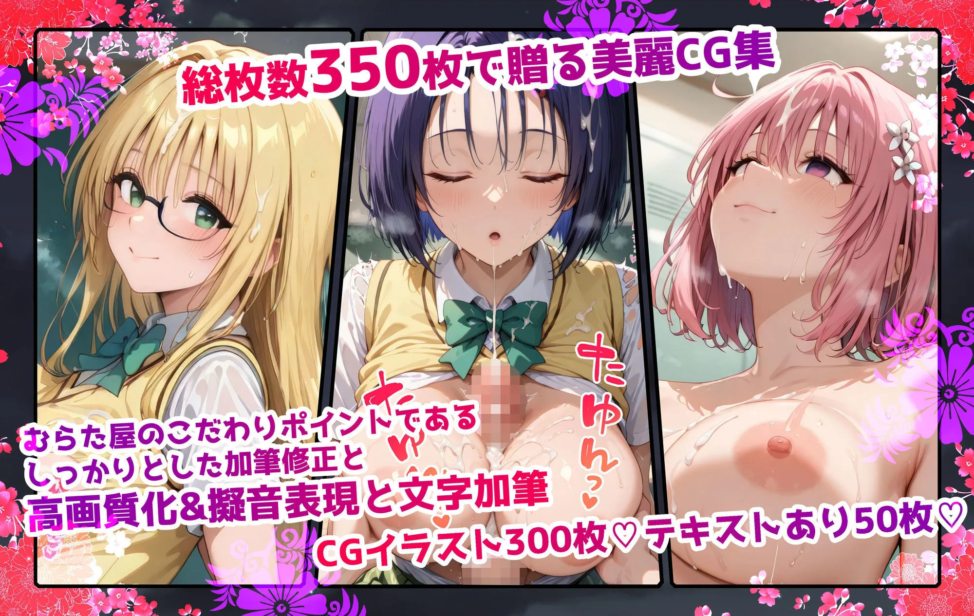 笑顔中心で竿役複数少なめ、マルチフェラとかヒロイン複数絡み多々で前戯、フェラ、ズリ、挿入、断面図射精など全370枚、文字入り差分50枚なのよ