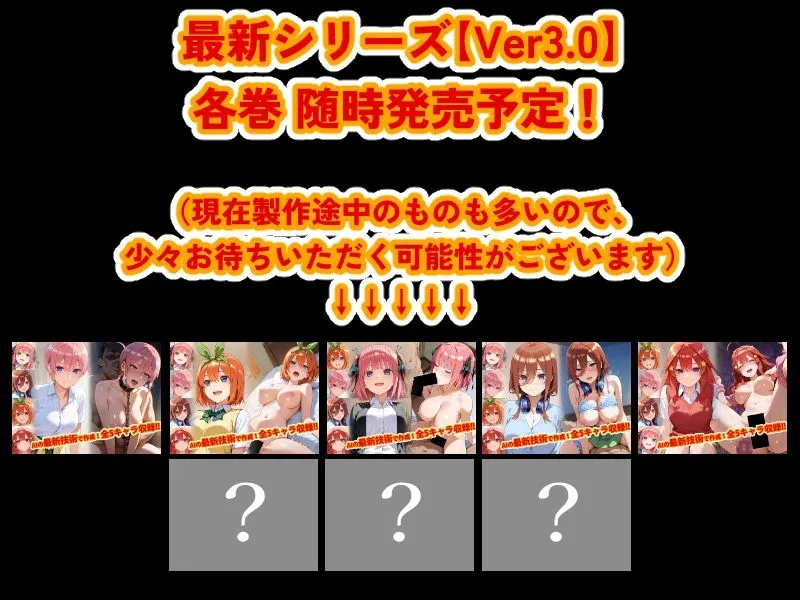 —–最新のAI技術を使い‘Ver3.0’にアップデート—–ご好評いただいているシリーズ最新作です。まだまだ進化を続けるAI作画の最先端をお届けします。ぜひ過去作品、アップデート作品、合わせてお楽しみください!#中野一花#中野二乃#中野三玖#中野四葉#中野五月———-