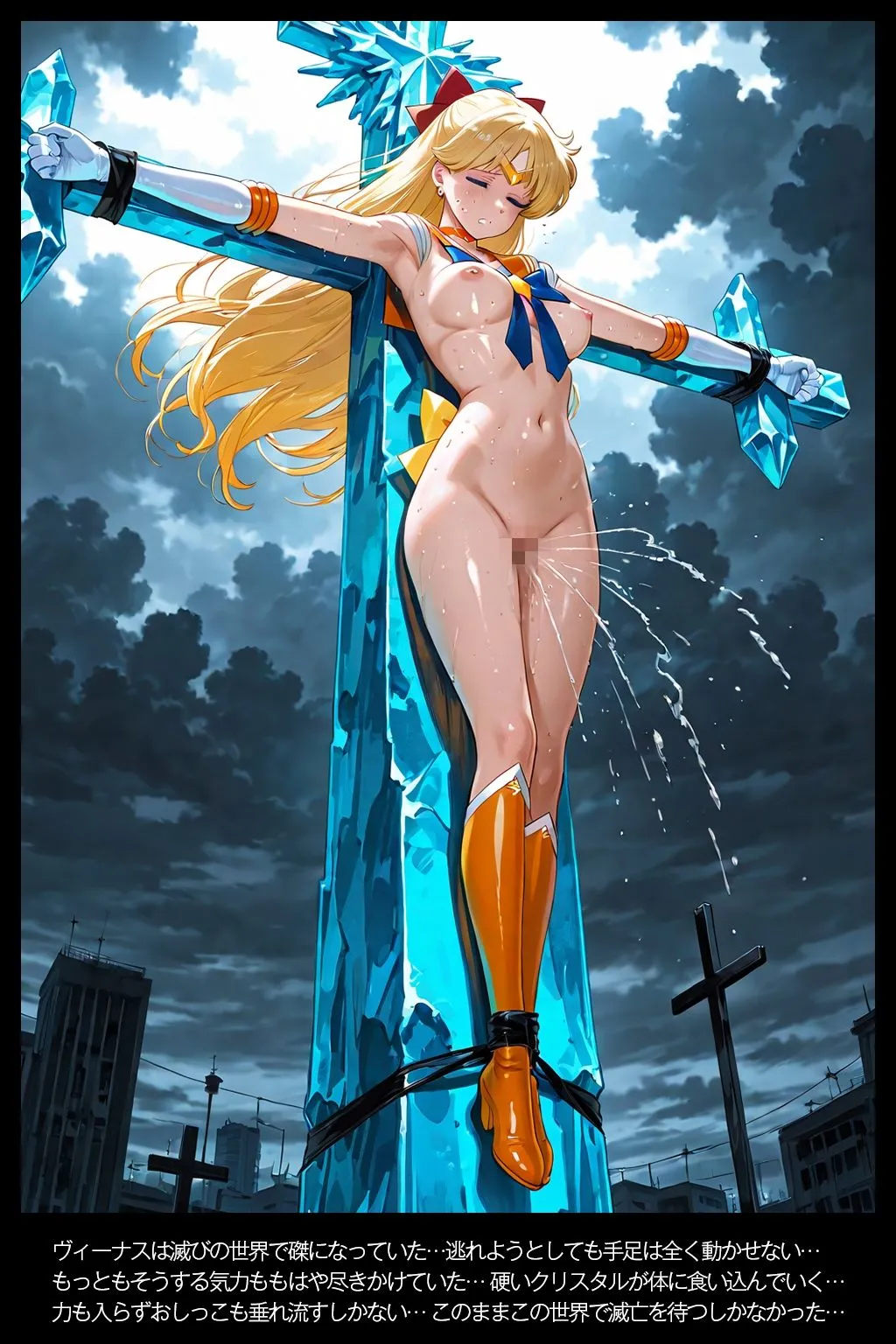 ヒロインピンチ!美少女戦士の危ない出来事いろいろセーラー●ィーナスが敵に捕まり酷い目にあわされます触手攻め・拘束・搾乳・輪●・磔などシチュエーション1.敵の電撃攻めで悶絶する2.触手に捕まり嬲られる3.磔にされる4.巨大なおっぱいに改造され搾乳される5.輪●この作品はAI生成した画像を加筆、コラージュ、文字やセリフを追加して作成しています。【注意事項】・登場人物は全てAIが生成したイメージであり、実際には存在しません。・AIにより画像を生成しているため、細部の表現に多少の乱れが生じている場合があります。・登場人物は全員20歳以上です。・本作の内容は、犯罪や違法行為を容認・奨励するものではなく、そのような意図も一切ありません。・本作は完全なフィクションであり、登場する人物、名称、設定などはすべて架空のものです。