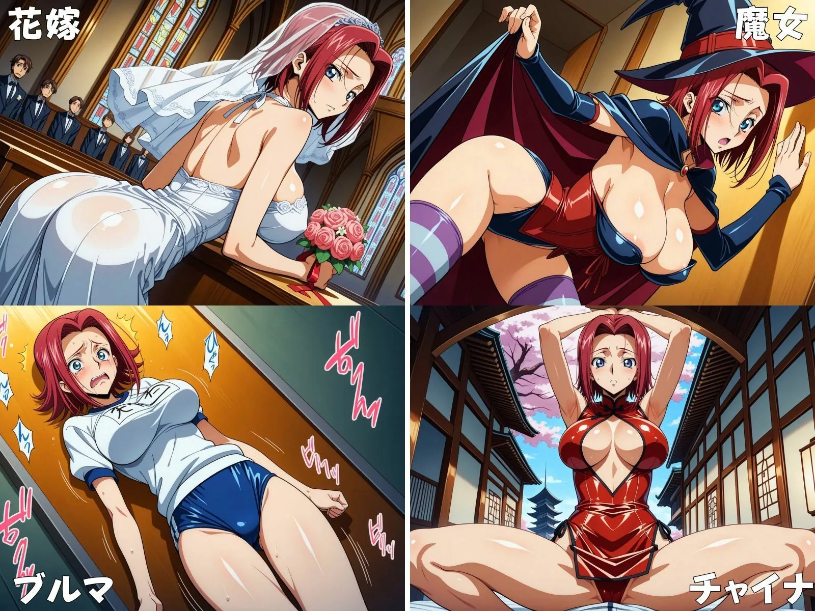 サキュバス、チアリーダー、ウェディングランジェリー、パイレーツ、エジプト女王、ラテックススーツ、ジムインストラクター、忍者、スチームパンク、ファンタジー戦士も入ってるよね