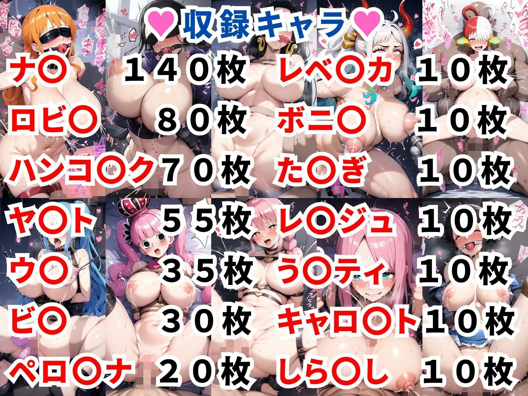 あかねこの作品はワンピースのフルカラー調教CG集で、人気女キャラ14人の調教シーンを全500枚収録なんだよ
