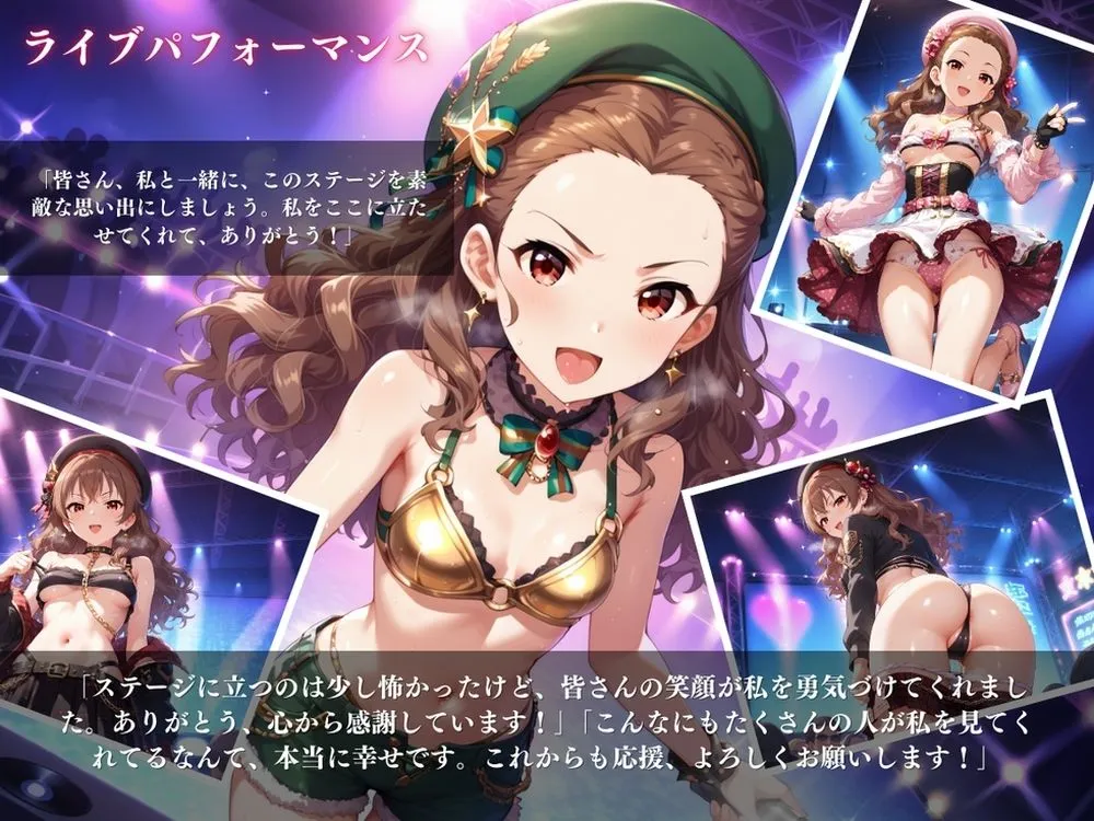 ライブパフォーマンスやグラビア撮影などさまざまなシチュエーションで裕美の魅力をお楽しみください。コスチュームの微エロな要素も必見だよね