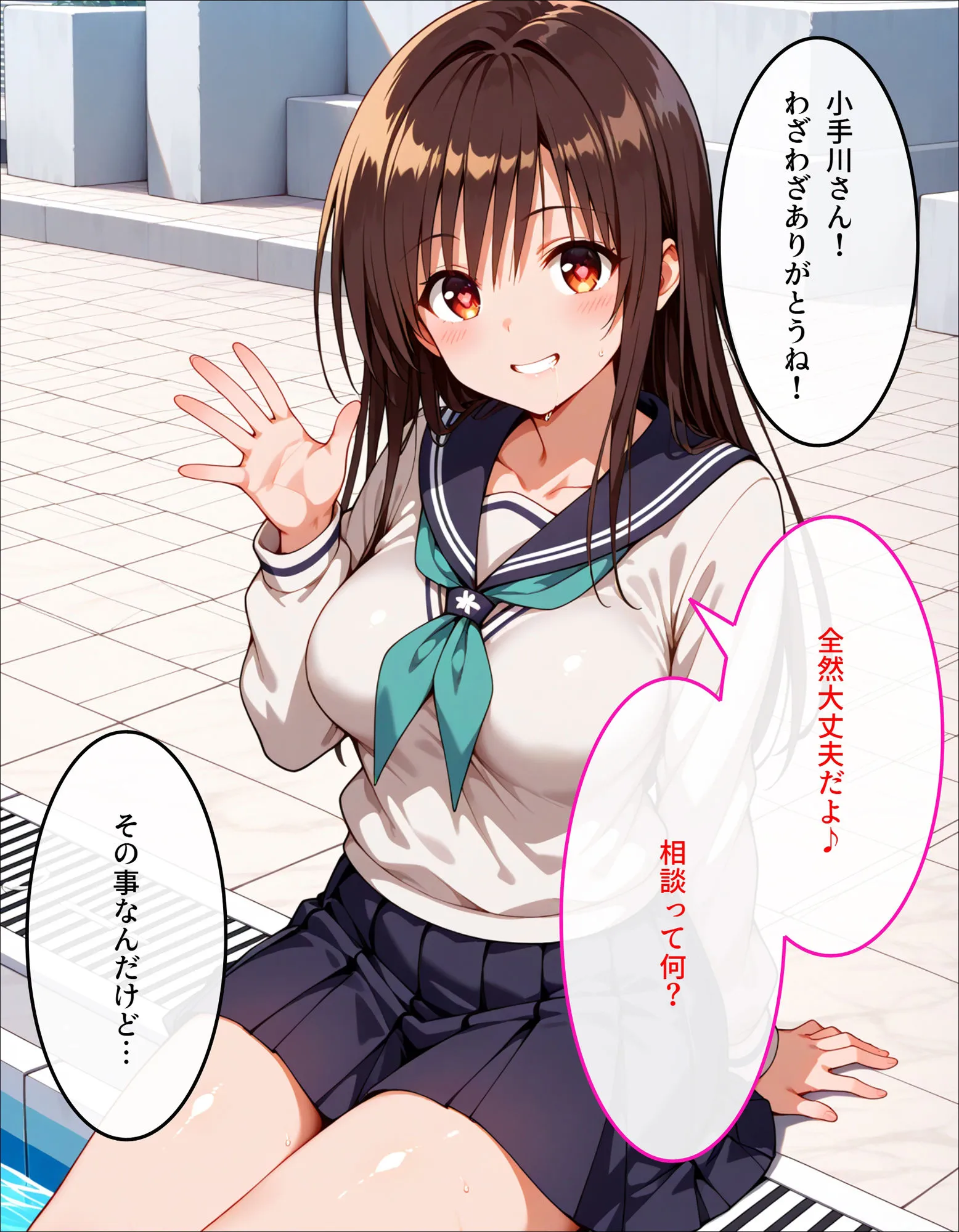 アナル正常位、バック、騎乗位、背面騎乗位、爆乳ver、駅弁、ずらし屋外プール、室内プールなんだけど