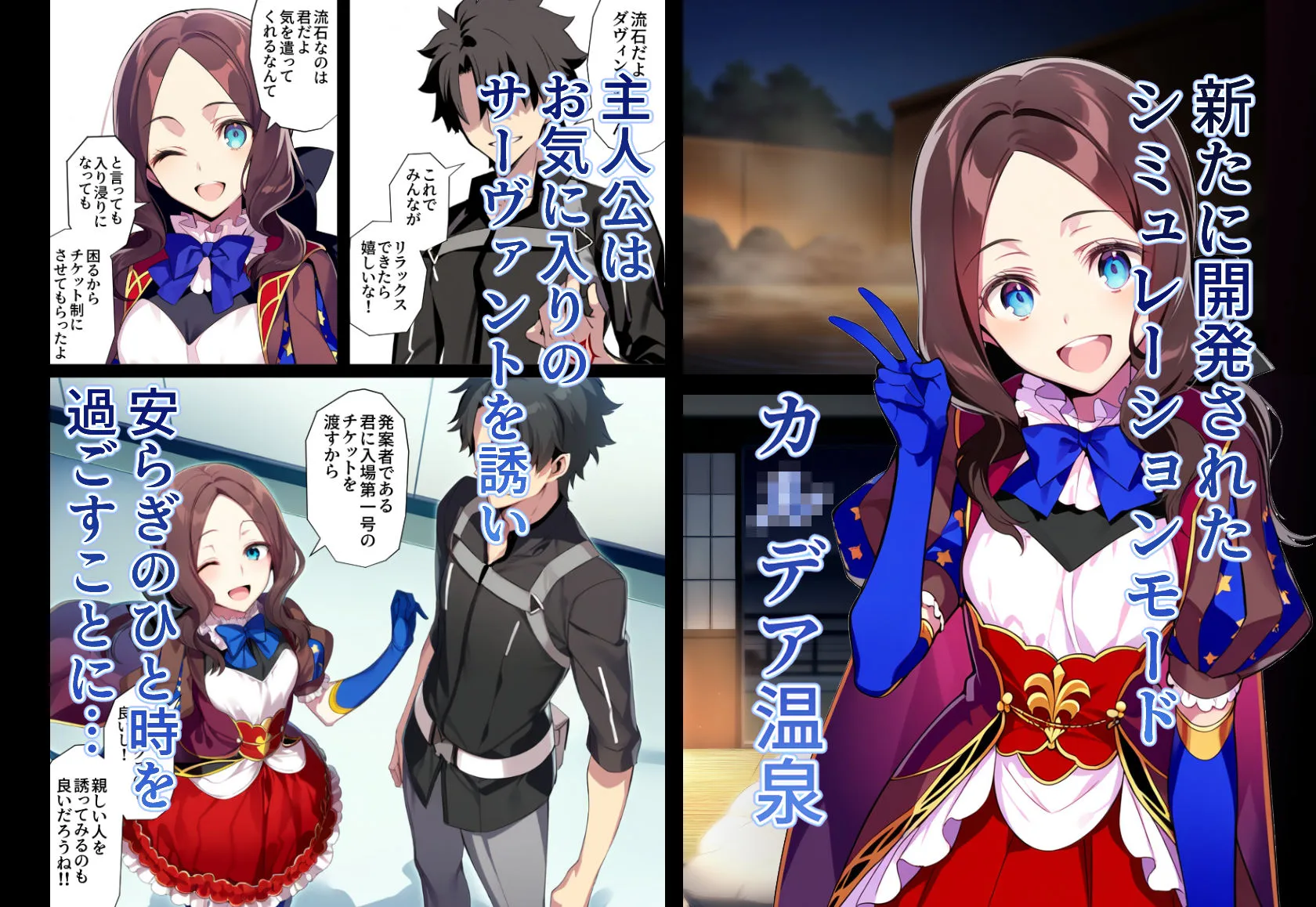 新たに開発されたシミュレーションモードの温泉旅館で、主人公がお気に入りのサーヴァントを誘って安らぎのひと時を過ごすのよ