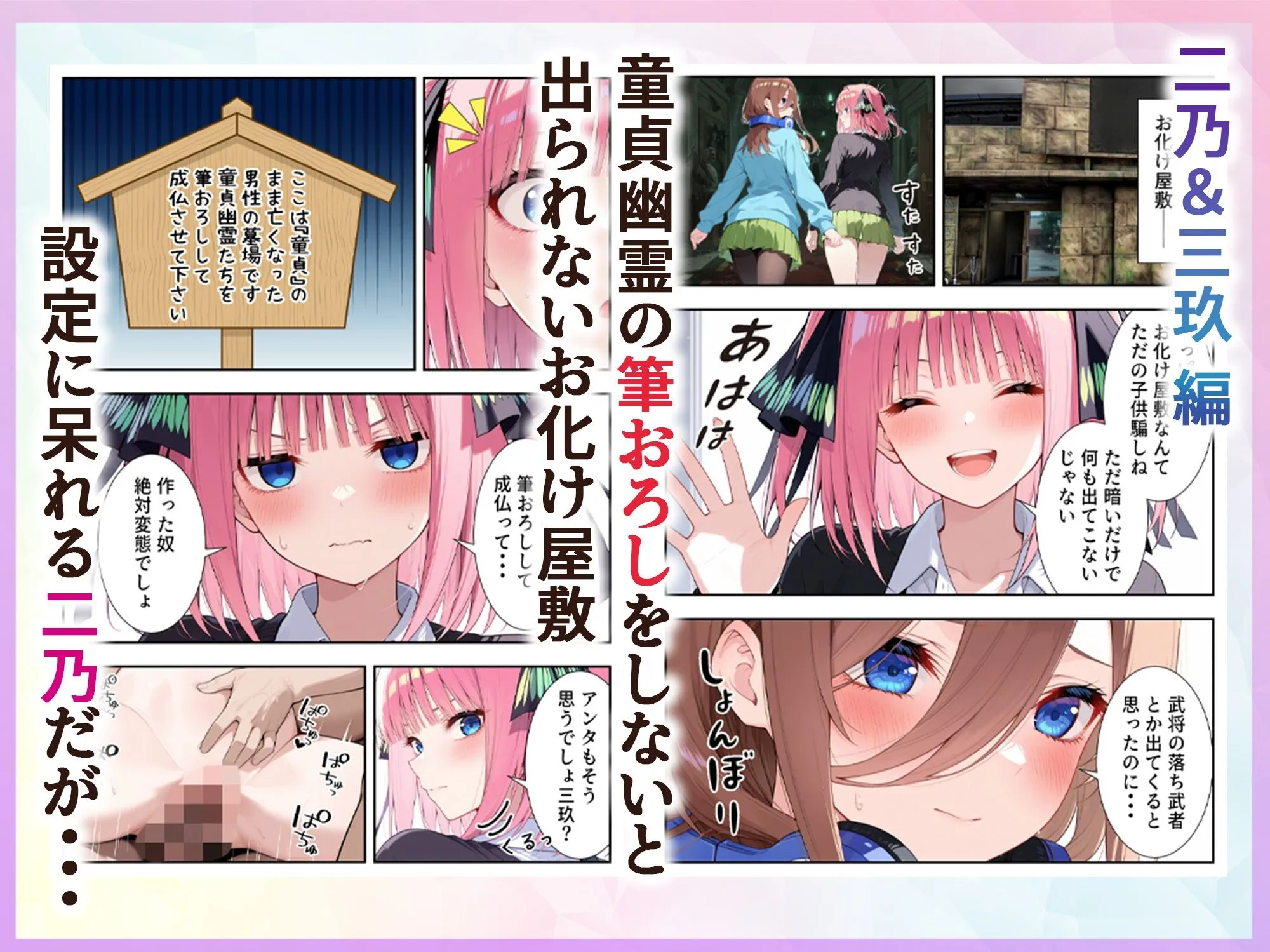 三玖が二乃を挑発して一緒にお化け屋敷に入るんだけど、そこは『童貞のまま亡くなった男性の墓場。筆おろしをして成仏させる必要がある』設定なのよ