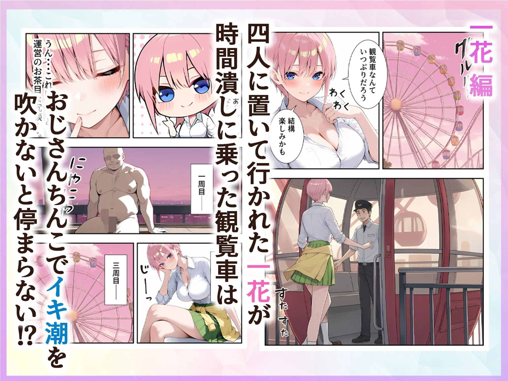 各々アトラクションに入っていき残された一花が時間潰しに観覧車に乗ったら、乗った瞬間全裸で勃起した男性が相乗りしてたよ