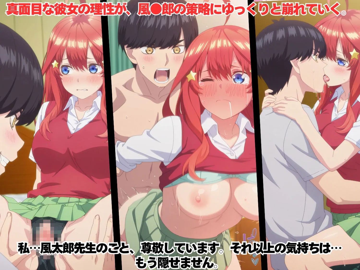 ★作品タイトル五つ子の催●ハーレム計画!誰が花嫁になるのか?いや、全員が肉便器になる。風●郎が偶然手に入れた催●アプリを使い、孕ませていく。そんなコンセプトストーリーのCG集です。※セリフなし最後は5人全員、風●郎の肉便器へと化します。★登場キャラクター(収録枚数)中野●花(90枚)中野●乃(90枚)中野●玖(90枚)中野●葉(90枚)中野●月(90枚)合計:500枚★プレイ・キス・クンニ・乳揉み、乳舐め・オナニー・足コキ・パイズリ・フェラチオ・顔射・立ちバック・駅弁・正常位・騎乗位・まんぐり返し・中出し・ぶっかけ・妊娠・3P、4P★仕様画像サイズ:縦|1344px1728px画像サイズ:横|1728px1344px画像形式:PNG形式ダウンロード形式:ZIPファイル《注意事項》キャラクターや衣装のデザインは、当サークル制作のイラストをもとにAI生成しています。本作品に登場するキャラクターは成人として設定されており、登場人物はすべて架空の存在です。