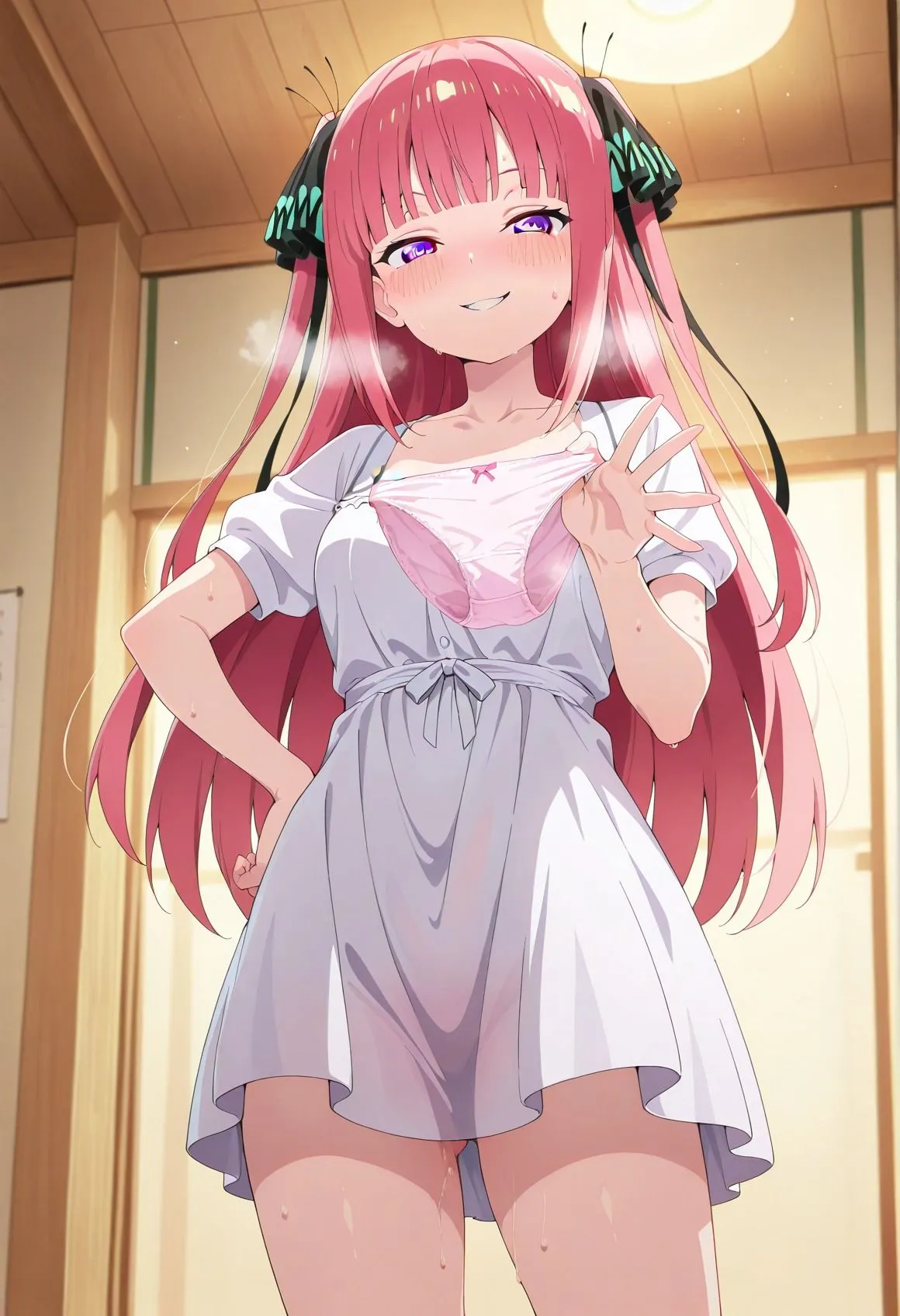 次女の性格について気の強いツンデレ:非常に気が強く、プライドが高いです。自分の意見をはっきり主張し、一見冷たく見えますが、根は家族思いです。姉妹思い:五つ子の中で最も姉妹の絆を大切にしており、特に他の姉妹が風太郎に心を開くことを警戒し、彼を敵視していました。これは、姉妹の関係性が変わってしまうことへの不安の裏返しでもあります。料理上手:五つ子の中では一番の料理上手で、家族の食事を担当することもあります。ファッション好き:流行に敏感で、おしゃれに気を使っています。【販売内容物】画像形式:png【作品説明】・CG100P【主なプレイ内容】・おじさんとのsex集※この作品はフィクションです.作中の描写に犯罪行為を助長させる意図はなく、実在の人物や団体などとは一切関係ありません。※この作品の登場人物はすべて成人済み。※本作はStableDiffusionを使用したAI生成画像を加筆、修正した作品となります※AIイラストの特性上、矛盾した状況(服装や髪型・体型など差異)はあるので、ご了承ください。