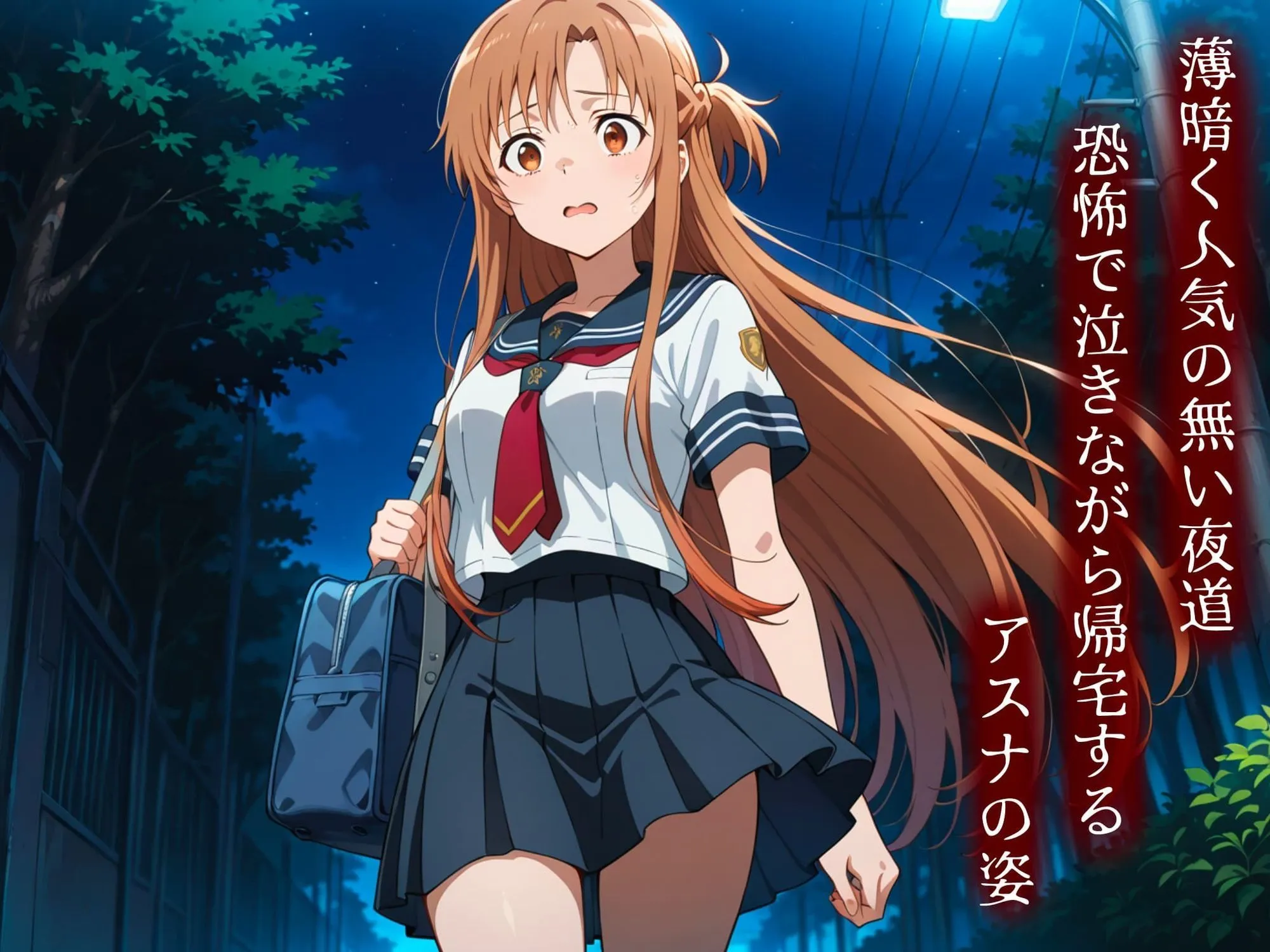 薄暗い夜道――。怖がるア○ナに、忍び寄るのは欲望に飢えた歪んだ影…。気づいた時には、もう逃げ場はなかった。必死に声をあげても、誰も助けには来ない。ア○ナの身体は暗闇の中で押し倒され、守るべき純潔は無惨に散らされていく――。恐怖と絶望、そして抗えぬ背徳の快楽が交錯する中、涙を流しながらも深く堕とされていく…。この作品は人気のない夜道で起きる‘最悪の瞬間’を徹底的に描いたダークハード系CG集です。無防備なア○ナが追い詰められ、その純潔を踏みにじられる衝撃の一部始終をご堪能ください。■内容乳揉み、手マン、クンニ、バック、騎乗位、正常位、中出しなど■画像サイズ1536×1024(横向き)■収録内容全455p=====================================※本作はセリフなしCG集です。※本作はStableDiffusionを使用した作品となります。※AIによって生成されたため、指などの細かい作画が破綻している場合がありますのでご了承ください。※本作は犯罪行為や違法行為を推奨するものではございません。
