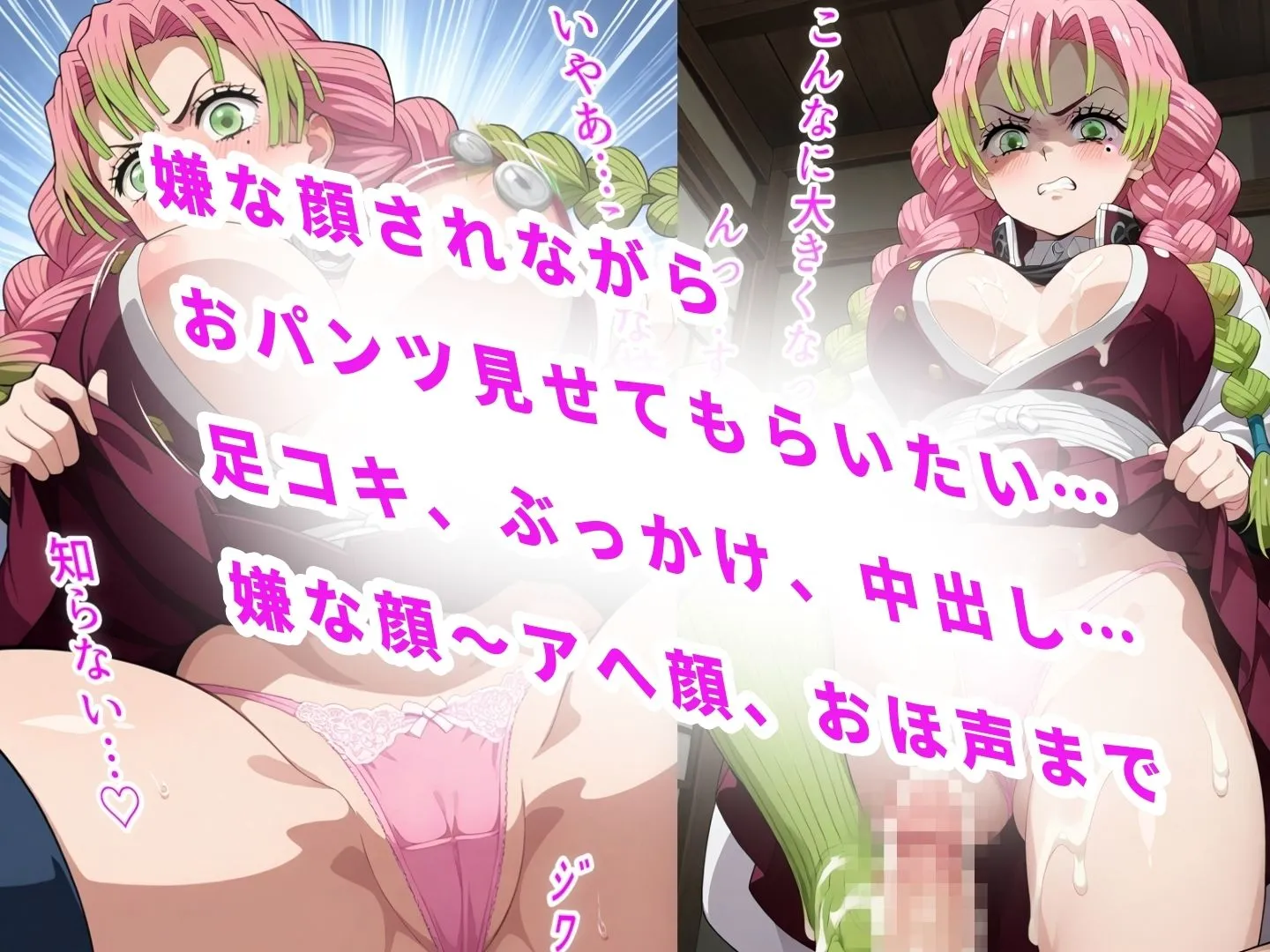 あかねこの作品は『嫌な顔されながら雌になるまで中出しさせてもらいたい【鬼●の刃】』で、パンチラ好きが楽しめる作品なんだよ