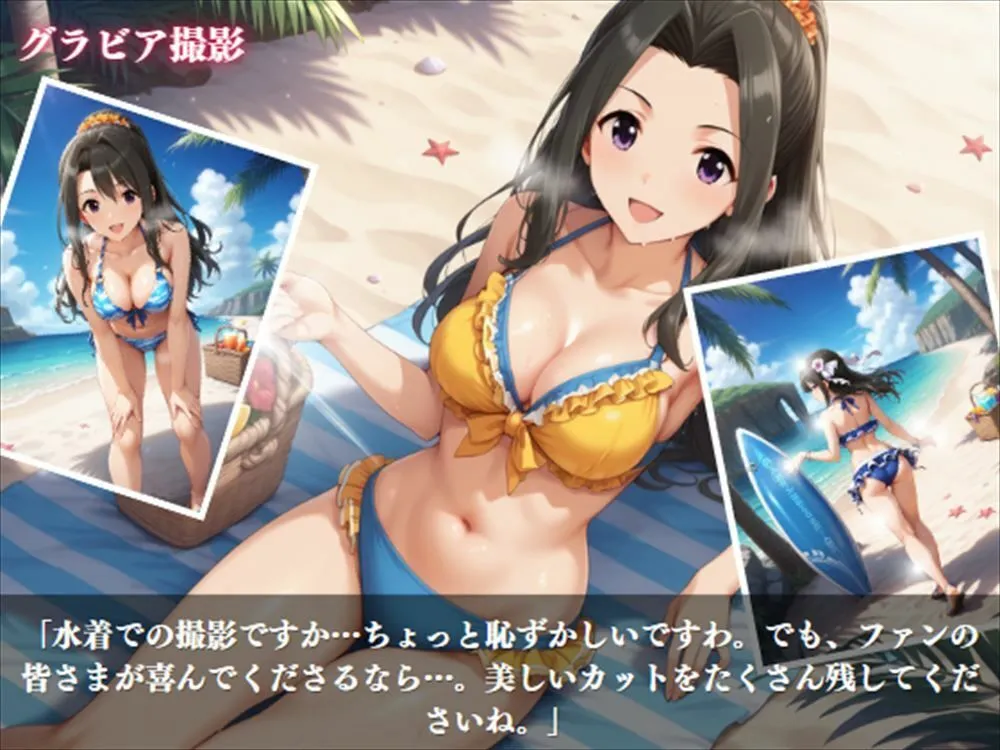 グラビア撮影では星花の水着姿を堪能できるのよ。スレンダーなボディラインがセクシーな水着に包まれて、さまざまなポーズで恥じらいながら大胆なショットが必見でしょ