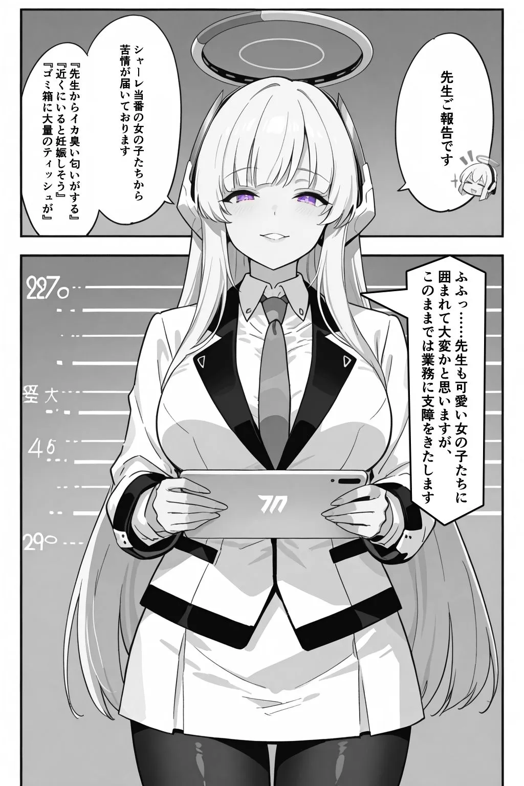 最近シャーレ当番の女の子たちから苦情が来ていると報告を受けた先生原因を解消すべく、シャーレで性活指導を任された生塩ノア。彼女の新たな任務は、‘先生の精子管理を行う’こと。「それでは手始めに1週間オナニーを我慢しましょうか」ノアの冷静な声とともに始まる日々。定期的なチェック、データ収集、そして‘自制心’のテスト。だが、いつしか先生は彼女の存在そのものに心を乱されていく。理性を保とうとするほど、ノアの笑顔が頭から離れない。一週間ほどしてノアが精子管理に現れる…「我慢は、強さの証明です。――先生、今日も記録を続けましょう」完璧な管理官と、その対象。抑え込まれた衝動が、静かに歪み始める――。【収録内容】本編18ページ(グレースケール)jpg版+PDF版同梱【SNS】制作中の漫画・進捗情報・次回作の予告は以下で発信中!X:@ai_wanna_