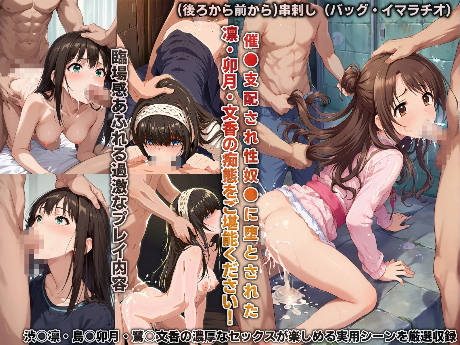 あかねこの作品は催眠支配されたデレマスの渋谷凛、島村卯月、鷺沢文香がフェラや種付けプレス、輪姦プレイまで色々な本番を繰り返し終盤ではプレイ中の撮影までも許してしまう内容だよ
