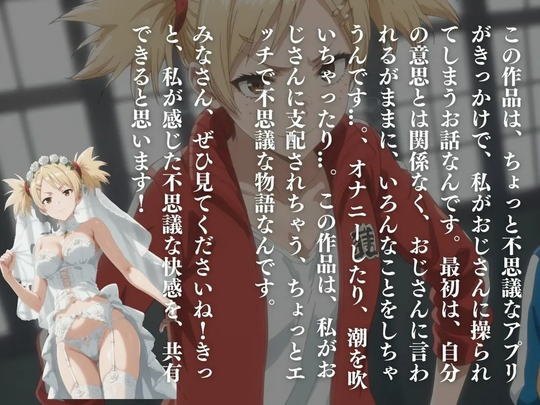 CG集では戦闘モードからアプリに操られ快楽に悶える姿、そしておじさんへの愛に気づくまでの甘い変化を描いてるよ