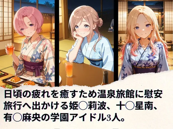 あかね日頃の疲れを癒すため温泉旅館に慰安旅行へ出かける姫◯莉波、十◯星南、有◯麻央の学園アイドル3人だよ