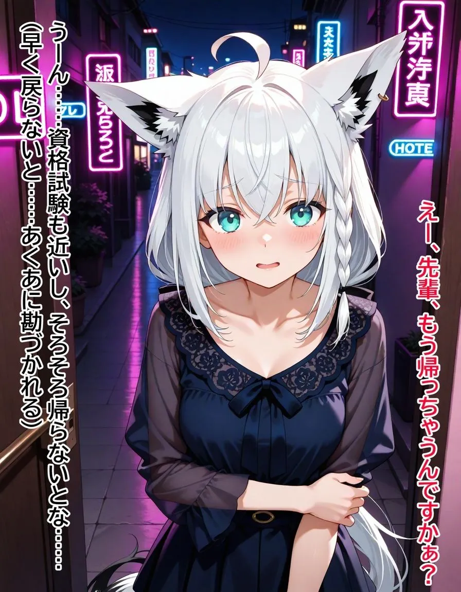 あかね白上との逢瀬の帰り道で、偶然彼女のあくあと遭遇してしまったシチュエーションから始まる作品だよ