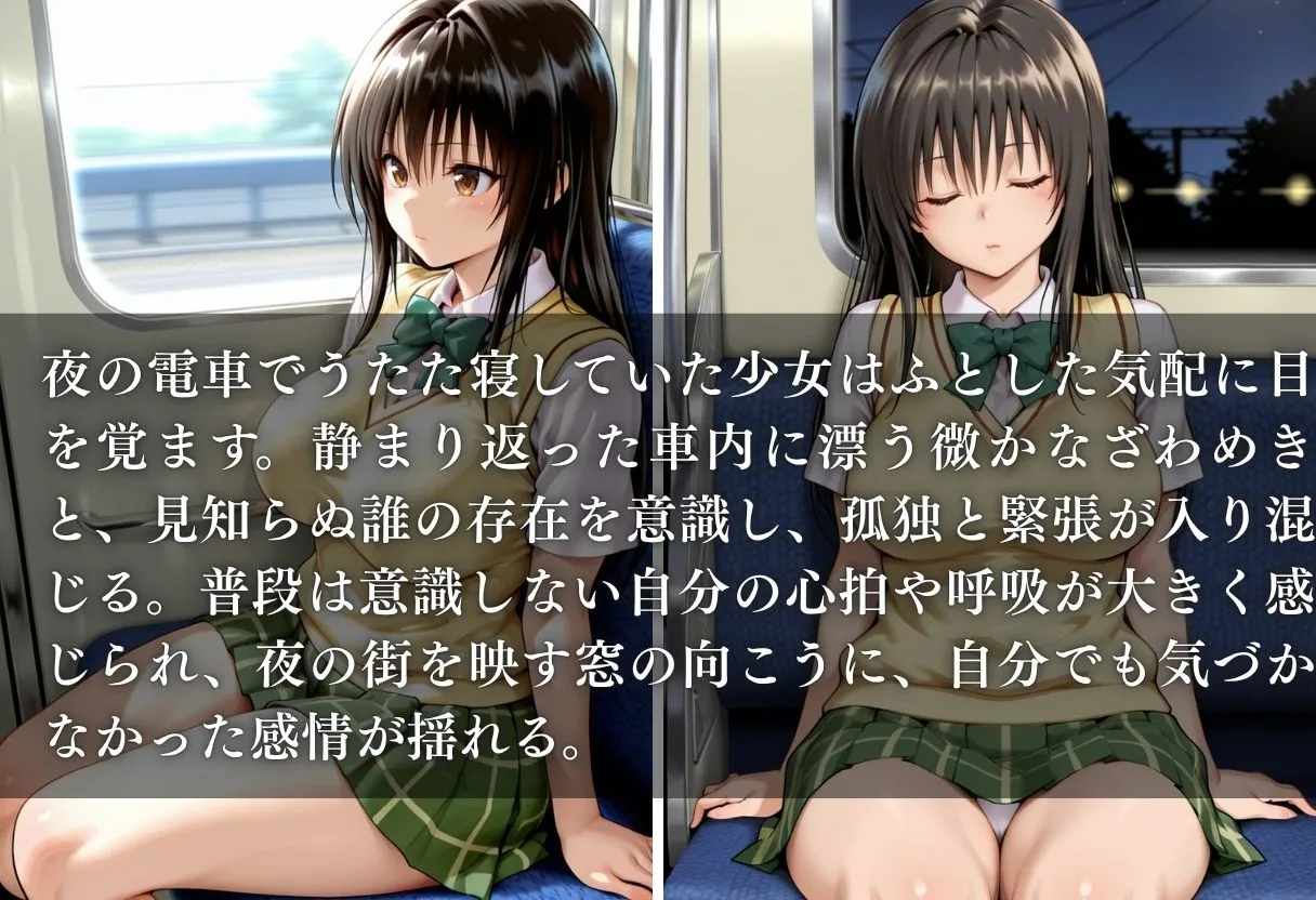 ※サンプル画像は本編より荒く、モザイクも大きくなっております。※アナルは全て無修正となります。【ストーリー】夜の電車でうたた寝していた少女は、ふとした気配で目を覚ます。静かな社内に漂う不安と誰かの存在を意識し、孤独と緊張が入り混じるひとときを過ごす。【登場人物】古手川唯【シーン】[電車]1電車に乗る2電車で居眠り3服の上から胸を揉まれる(着衣あり)4下着脱ぎ(ブラジャー・スカート有)5前から胸を揉まれる(ブラジャーあり・制服乱れ)6電車で居眠り顔や胸に押し付け7電車で居眠り射精8起きる(ブラジャーあり・制服乱れ)9手マン10イマラチオ11性行為12逃げる13緊縛14手マン15イマラチオ16性行為[自宅]1妊娠2バイブ・アヘ顔3手コキフェラ・虚ろな目4イマラチオ・虚ろな目5性行為・アヘ顔6事後・虚ろな目※この作品はAIを利用して作成したものです。※StableDiffusionを使用して生成しております※技術的な制約やAIの学習データによって、細部に破綻や不自然さが含まれる場合があります。購入前に、そのことを理解し、同意した上で購入を検討していただくことをお願いいたします。※購入後の取り扱いに不備があった場合こちらは一切責任を負いません。※商用目的での利用・第三者への譲渡・転載等が発見された際には法的処置をとらせていただき、損害賠償請求を致します。