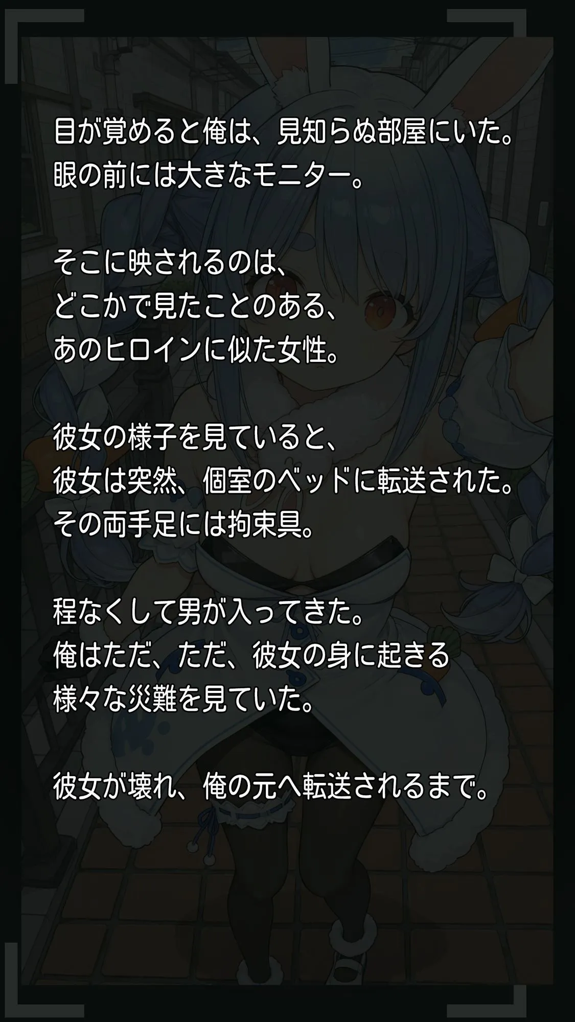 ある日、見知らぬ部屋にいたんだよ。置いてある大きなモニターにはあの作品のヒロインに似た女性が映し出されてた