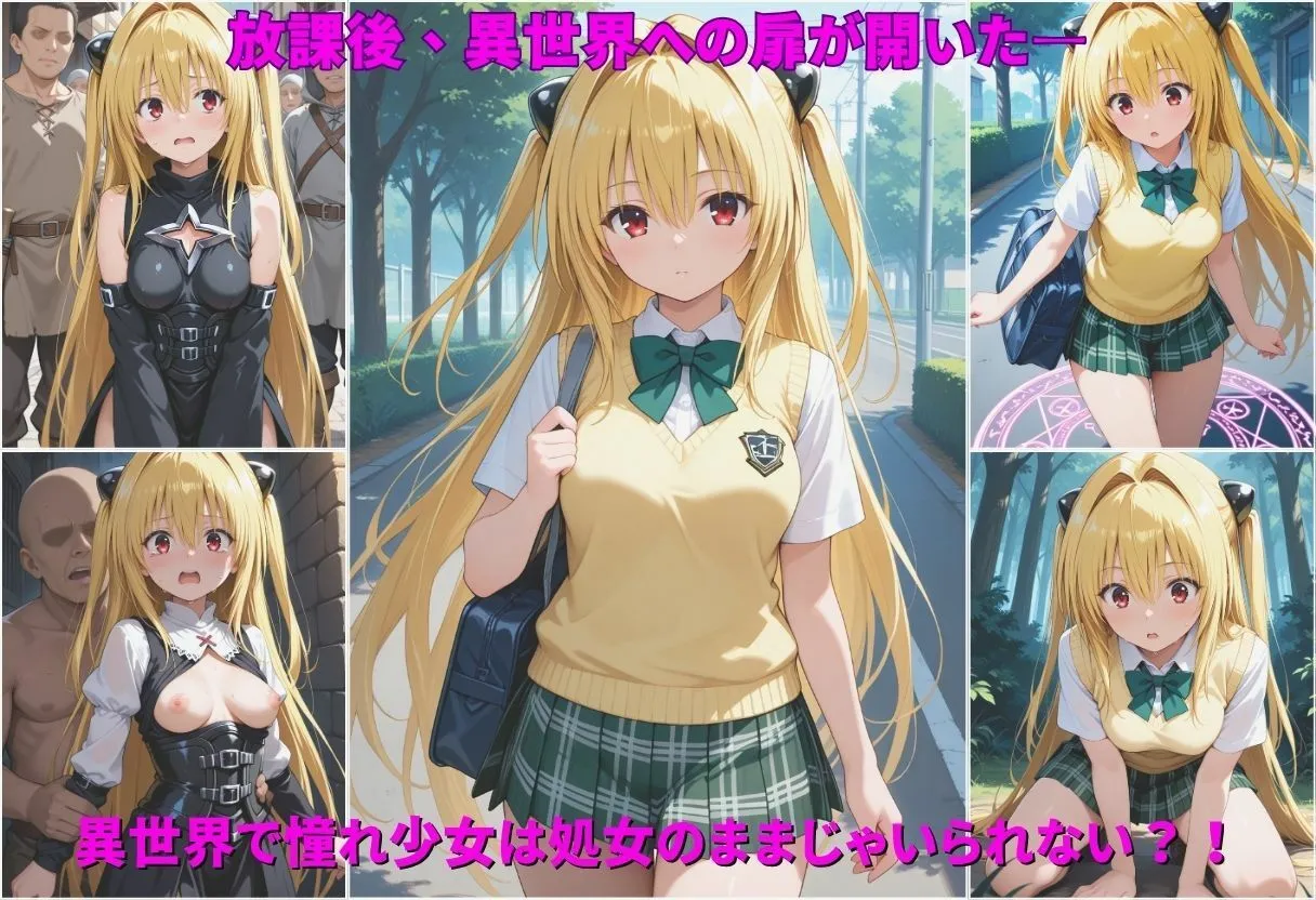 ※サンプル画像は本編より荒く、モザイクも大きくなっております。※アナルは全て無修正となります。【ストーリー】クラスのアイドル的存在の女子校生が女がいない’異世界’へ飛ばされ、そのまま性奴●と化す―憧れマドンナが史上最悪の「処女卒業シーン」を迎えることに…!性奴●化し、そのまま快楽堕ち、メス化する、普段は見れない彼女の姿をお楽しみ下さい待ち受けていたのは、地獄の始まりと今までに感じたことのない快楽―逃げ切れない快楽のはてに、彼女は変わってしまった―【登場人物】金色の闇【シーン】1下校中の帰り道2下校中魔法陣出現3森へ転生4異世界の街へいく5裏路地に連れ込まれる6路地裏服の上からボディータッチ7路地裏マンコを広げる・広げられる8路地裏手マン・クンニ9路地裏放尿させられる10路地裏全裸にされる11路地裏緊縛12路地裏イラマチオ13路地裏性行為14路地裏性行為事後15宿屋で落ち込む16宿屋寝る17宿屋おっぱいを触られ、起きる18宿屋手マン・クンニ19宿屋イラマチオ20宿屋性行為21宿屋性行為事後※この作品はAIを利用して作成したものです。※StableDiffusionを使用して生成しております※AIで生成された画像は、実在の人物・キャラクターに類似している場合がありますが、それは偶然の一致であり、一切関係がありません。※技術的な制約やAIの学習データによって、細部に破綻や不自然さが含まれる場合があります。購入前に、そのことを理解し、同意した上で購入を検討していただくことをお願いいたします。※商品は予告なく販売を中止することがあります。予めご了承ください。※購入後の取り扱いに不備があった場合こちらは一切責任を負いません。※商用目的での利用・第三者への譲渡・転載等が発見された際には法的処置をとらせていただき、損害賠償請求を致します。※被写体は全て成人しておりコスチュームプレイの衣装です。