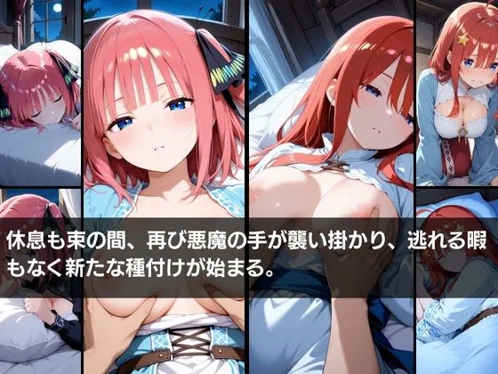 ※サンプル画像は本編より荒く、モザイクも大きくなっております。※アナルは全て無修正となります。【あらすじ】突如現れた魔法陣に吸い込まれ、転生したその先は「種付け行為こそが魔力を生む」異世界だった。力を求める者たちは女を犯し、その身体から魔力を搾り取る。抗う者は淘汰され、従う者だけが生き残る。そこで始まるのは、生き残るために抗えぬ欲望に身を委ね、支配と快楽が渦巻く終わりなき儀式だった――。【登場人物】五等分の●嫁・中野●乃・中野●月【内容】『異世界転生編』・下校途中・ワープ(森)・街に出る『前戯・拘束編』・痴●(尻触り)・おまんこくぱぁ・手マン・クンニ・放尿・拘束・拘束・フェラチオ『挿入・種付け編』・拘束挿入・(正常位・騎乗位・バック)・拘束・種付け(中出し)『宿舎種付け編』・睡眠・胸揉み・手マン・クンニ・フェラチオ・挿入・(正常位・騎乗位・バック)・種付け(中出し)※StableDiffusionを使用して生成しております。※AIで生成された画像は実在キャラクターに類似している場合がありますが、それは偶然の一致であり、一切関係がありません。※技術的な制約やAIの学習データによって細部に破綻や不自然さが含まれる場合があります。購入前に、そのことを理解し、同意した上で購入を検討していただくことをお願いいたします。※商用目的での利用・第三者への譲渡・転載等が発見された際には法的処置をとらせていただき損害賠償請求を致します。