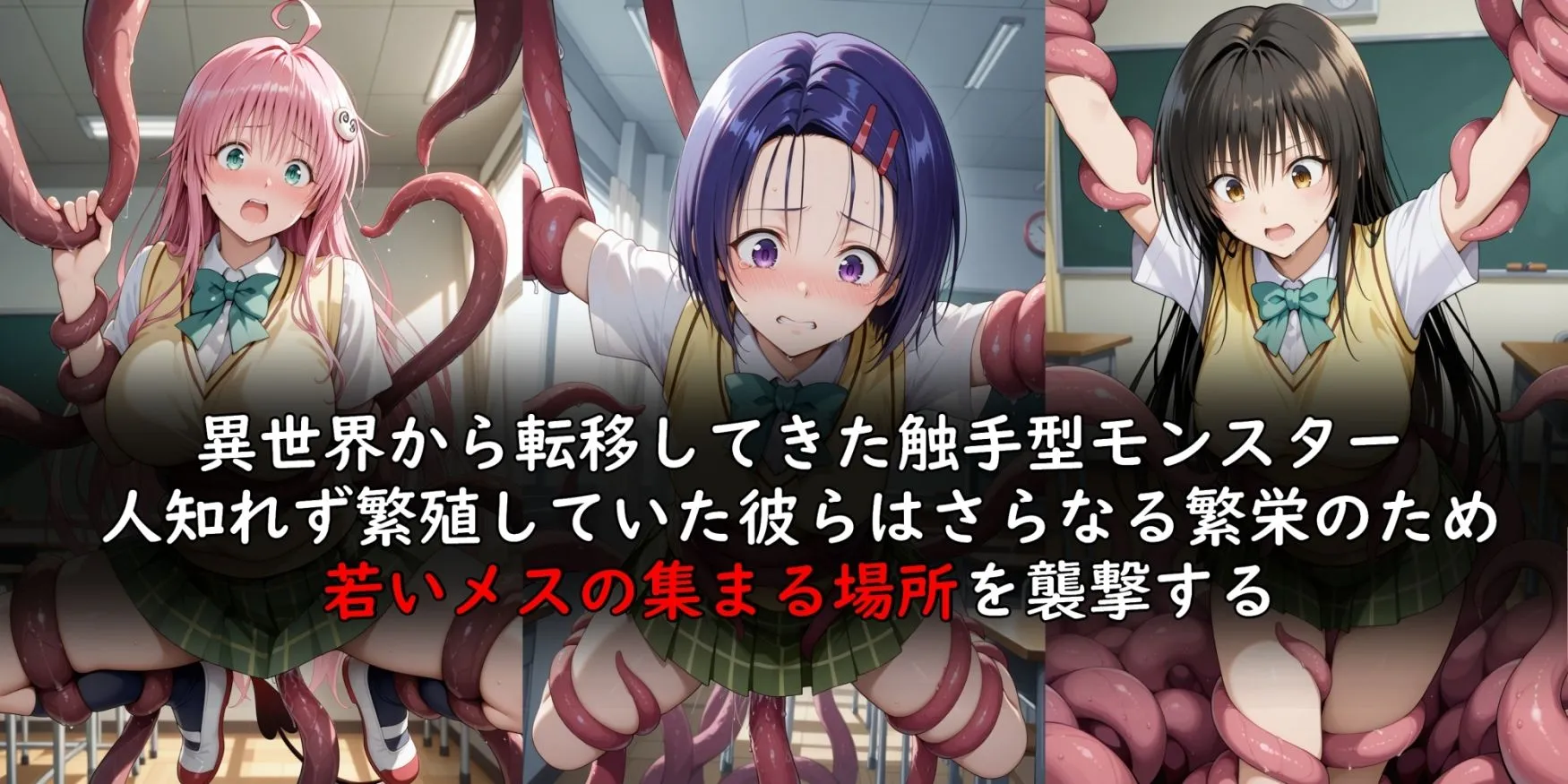 少女たちの集まる学校を狙って、触手に襲撃された彩南●●にてララ・サタリン・デビルーク、西連寺春菜、古手川唯の3人が触手に犯されるCG集でしょ