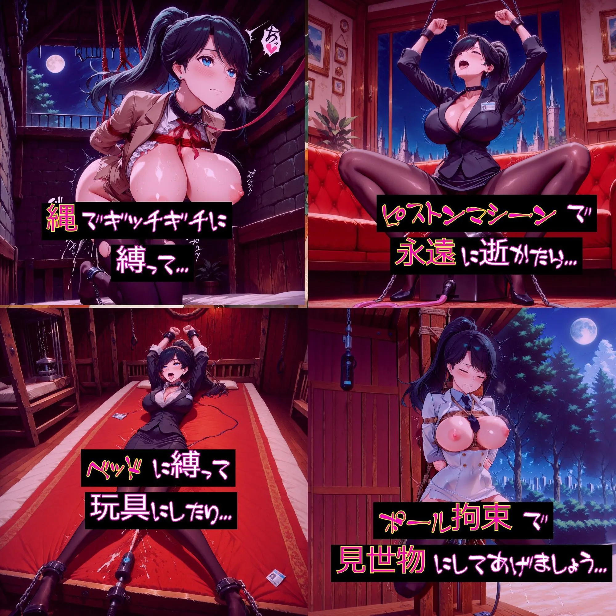 玩具攻め262枚で、磔、拘束椅子、羞恥、クリブラシ、ベッド拘束、ギロチン拘束、搾乳、吊るし上げ、壁尻等々なんだけど