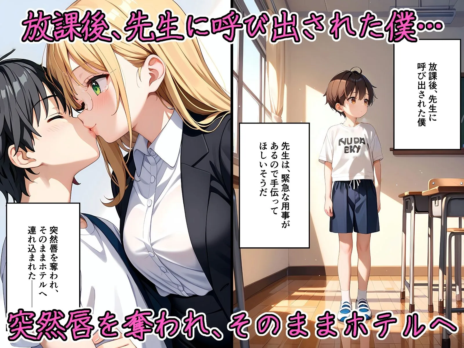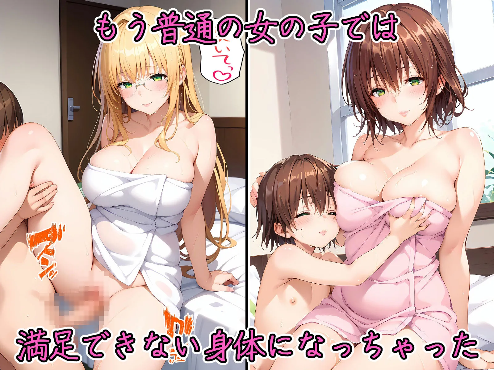 あかね淫乱痴●達に逆レ〇プされちゃった僕、という作品なんだよ。豊満な肉体を持つ彼女達に迫られる小っちゃい男性がテーマでしょ
