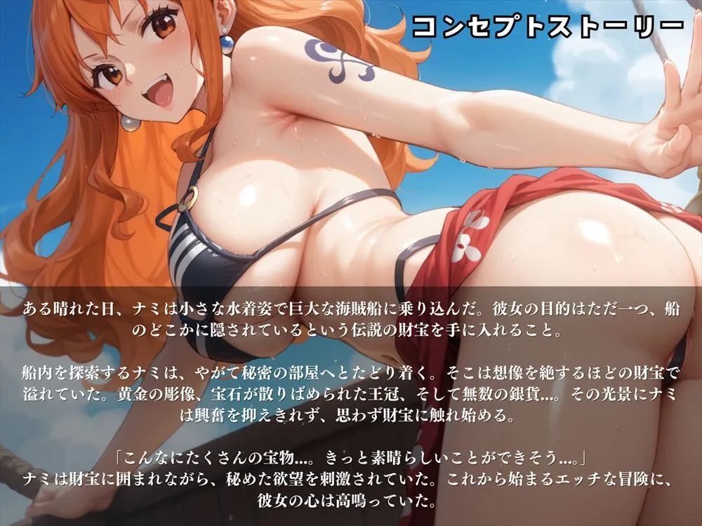 船上での淫らな行為から、様々なシチュエーションでのエロティックな場面を収録してるのよ。キャラクターはワンピースのナミでしょ