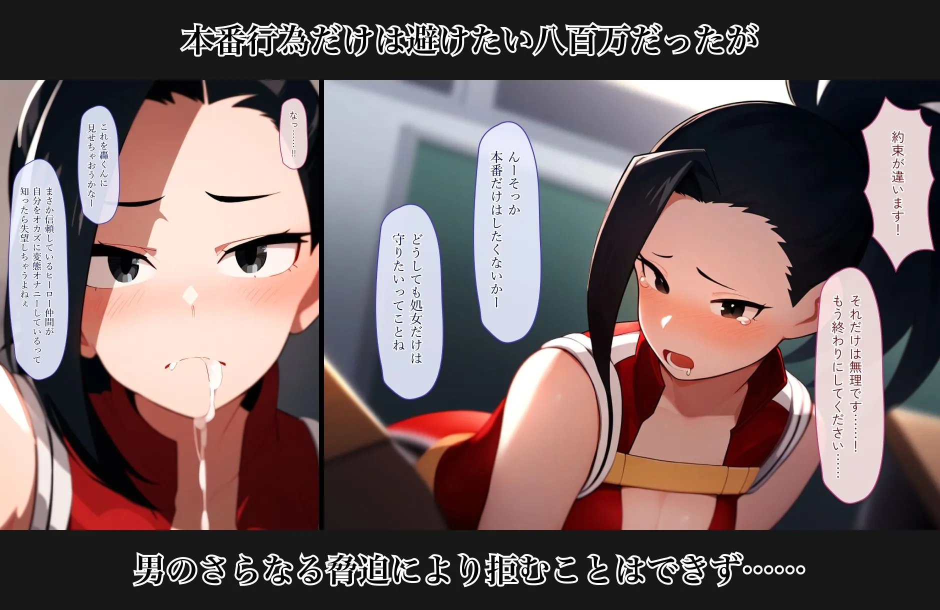 この作品はストーリー付きCG集で、容姿端麗・文武両道名家のお嬢様ヒーロー、八百万百が主人公なんだよ