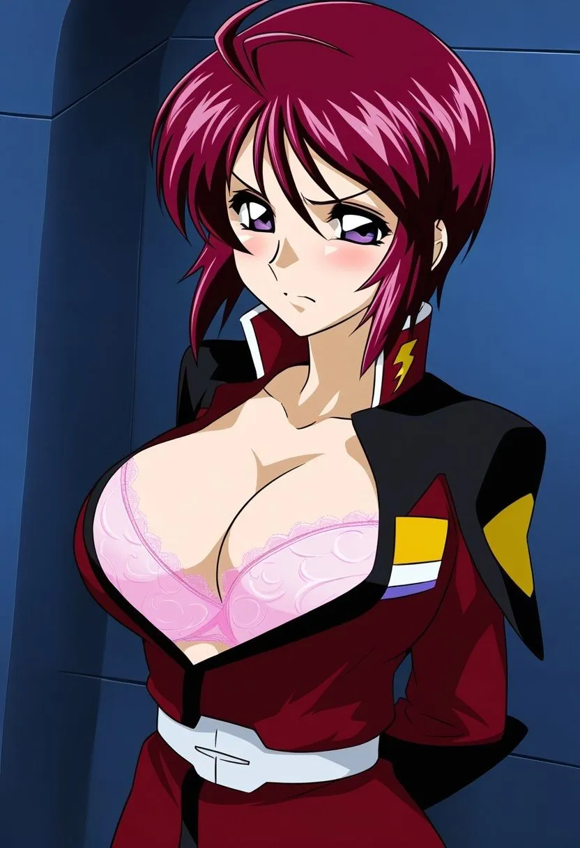 徐々に服を脱がされるよ。ザフトの制服をはだけて胸を見せて、上着を脱がせてスカートも脱がせて下着姿に