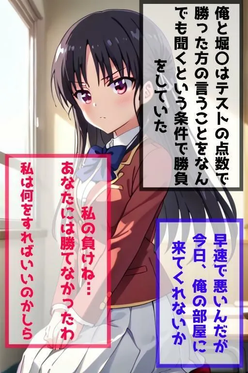 勝敗を決める一戦で敗北した堀〇が、勝利者・綾〇路による『とあるカリキュラム』を強いられる話なのよ