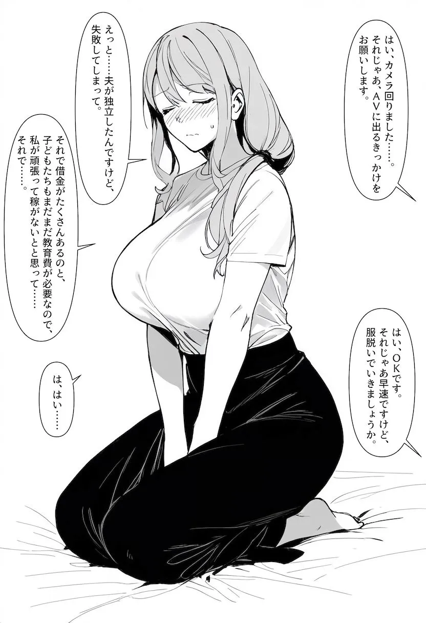 簡単なインタビューから始まって、フェラ、パイズリ、正常位、バック、口内射精、中出しとかが描かれてるのよ