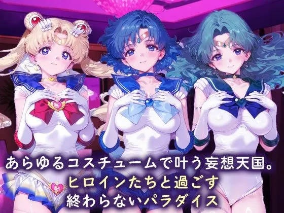 ’あの人気ヒロインたちを、思いのままにコーディネート──従順なペットのように堕とし尽くす。──本作は’’美少女戦士セーラームーン’’に登場する「スーパーセーラームーン」「セーラーマーキュリー」「セーラーネプチューン」3人のヒロインを題材とした、衣装フェチ×性奉仕を徹底追求したCGイラスト集です。ラブホテルが舞台。彼女たちが選ばれた衣装を身にまとい、淫らに尽くす姿を収録。ご用意したコスチュームは次の通りです。メイド(前戯):ご主人様に忠誠を尽くす性奉仕ドール水着(本番):媚びたポーズで誘う発情ペットバニー(本番):挑発的なM体勢での絶頂奉仕ウエディング(事後):純白のドレス姿で初夜のように穢される各ヒロインごとにフォルダ分けされた実用的な構成。表情・体位のバリエーションも豊富に揃え、フェチ心を刺激する仕上がりです。衣装好き、ヒロイン好きのあなたへ――抜きに特化したCG集です。※登場するキャラクターはすべて架空の存在(18歳以上)です。※ストーリー・台詞要素はなく、純粋に実用性を重視した構成です。※本作品はAIで生成したイラストをベースに加筆・修正を施しています。’