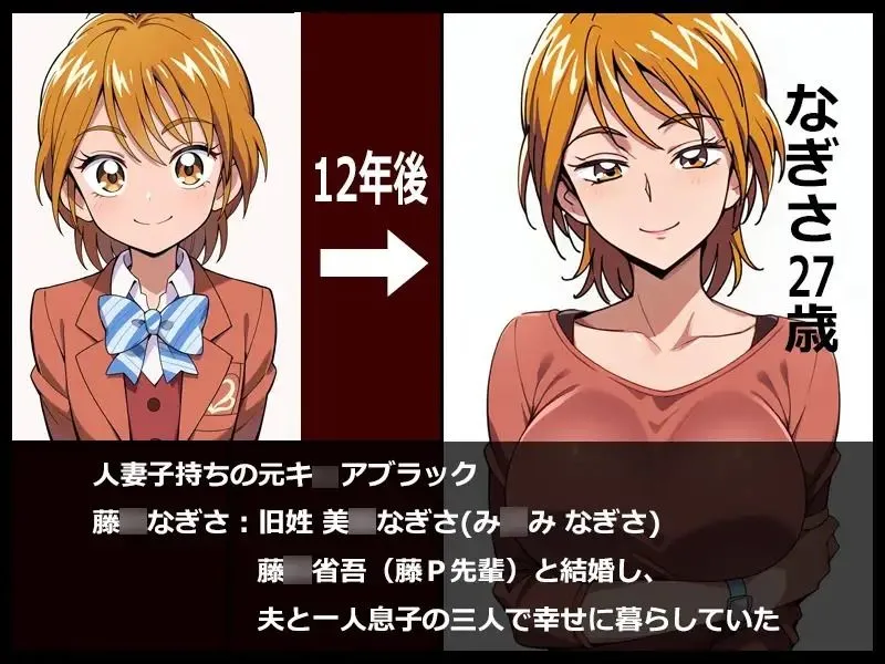 あかね世界に平和をもたらしたプリキ○アは役目を終えて日常生活に戻り、一般人として人生を謳歌していく平和な世界で生きる元プリキ○ア達のシリーズだよ。大人プリキ○アシリーズ第一弾で、人妻子持ちの元キ○アブラック、旧姓美○なぎさの浮気セックスを収録したCG集なんだ