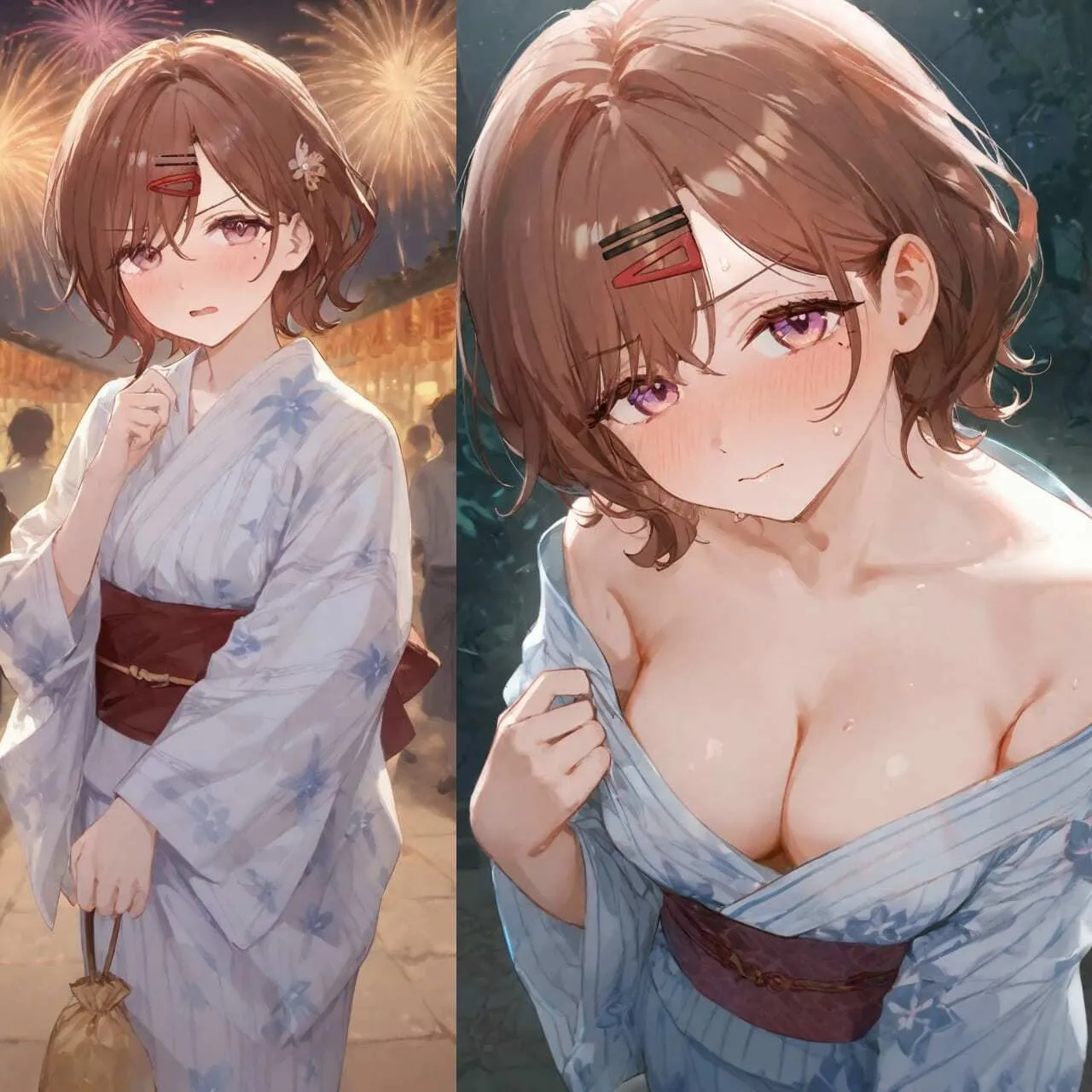 あかね過去pixiv・boothに投稿した『円香と浴衣デート』『円香と浴衣デート(R18)』の2作品を一度に楽しめるお得な作品に再編集したんだよ