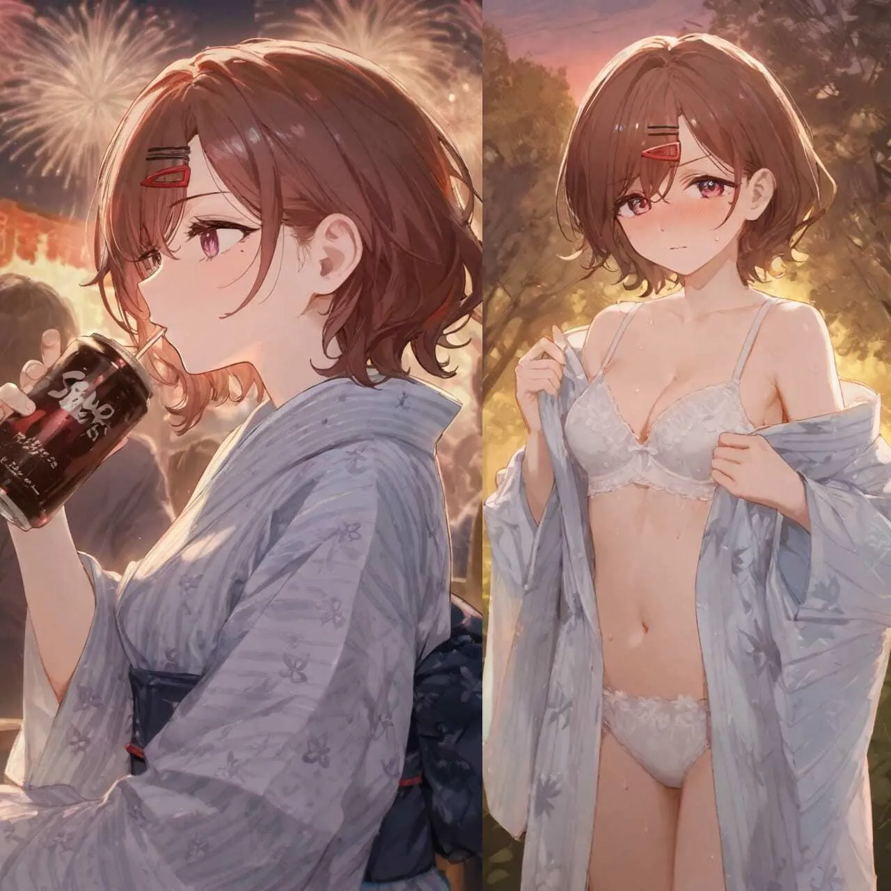 円香との夏の浴衣デート、不器用な彼女も花火を楽しむうちに距離が縮まって、デートからエッチまでの流れをじっくり楽しめるCG集なのよ