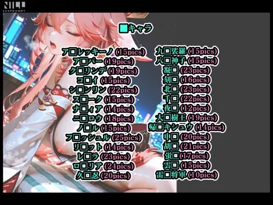 コ□イが15pics、シ□ンリンが22pics、ス□ークが15pics、ナ□ィアが14picsだよ