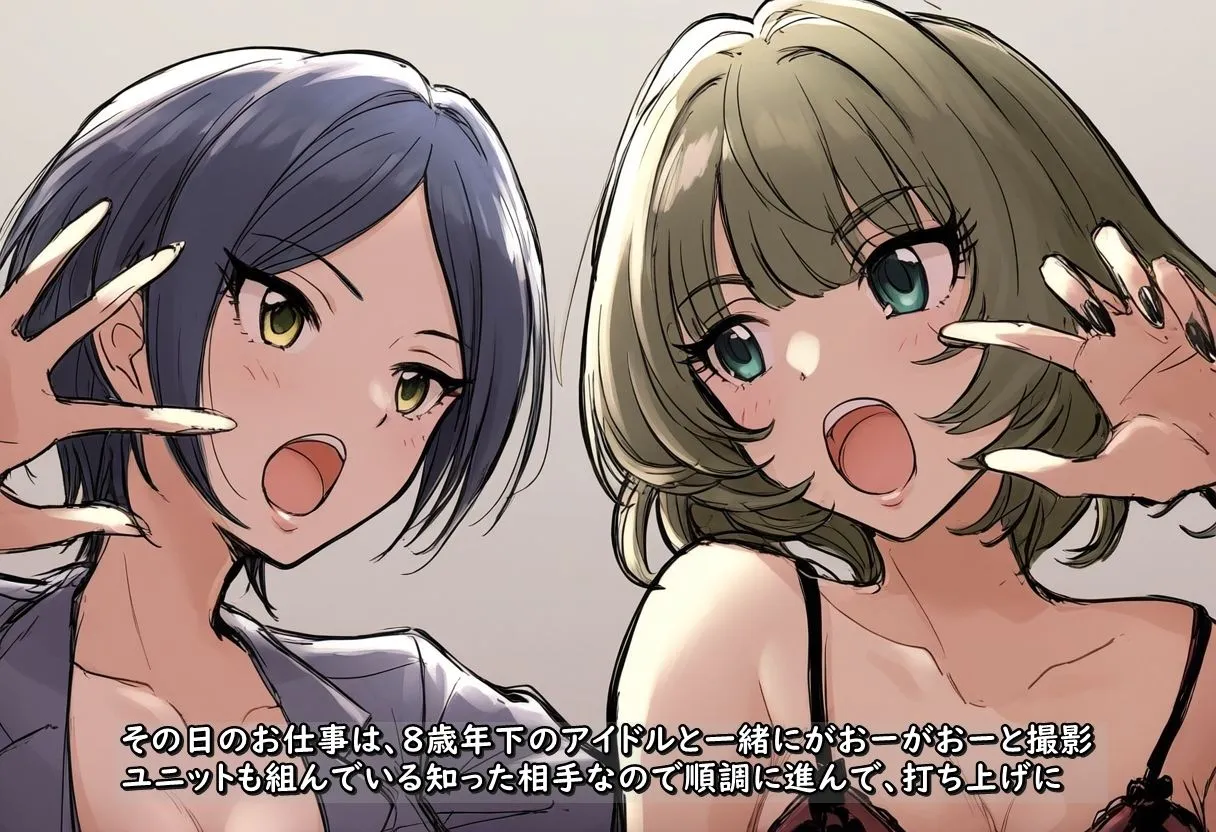 過去作の『ユリハサ!百合営業しているアイドルのPになったら本当にレズってた二人の間に挟まることになりました』『ユリハサ!アイマス版2姉妹みたいなアイドルが実は百合ってて男のことも性教育してほしいと頼み込まれました』とは同一世界観だけど