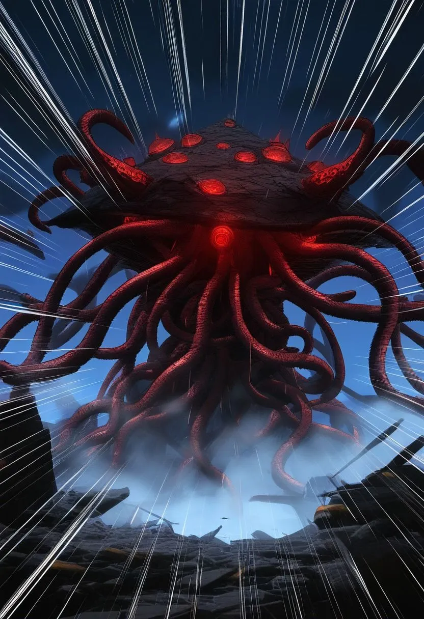 そこで待ち受けていたのは人ならざる存在、無数の触手が闇の中から艶めかしく蠢いてるわ