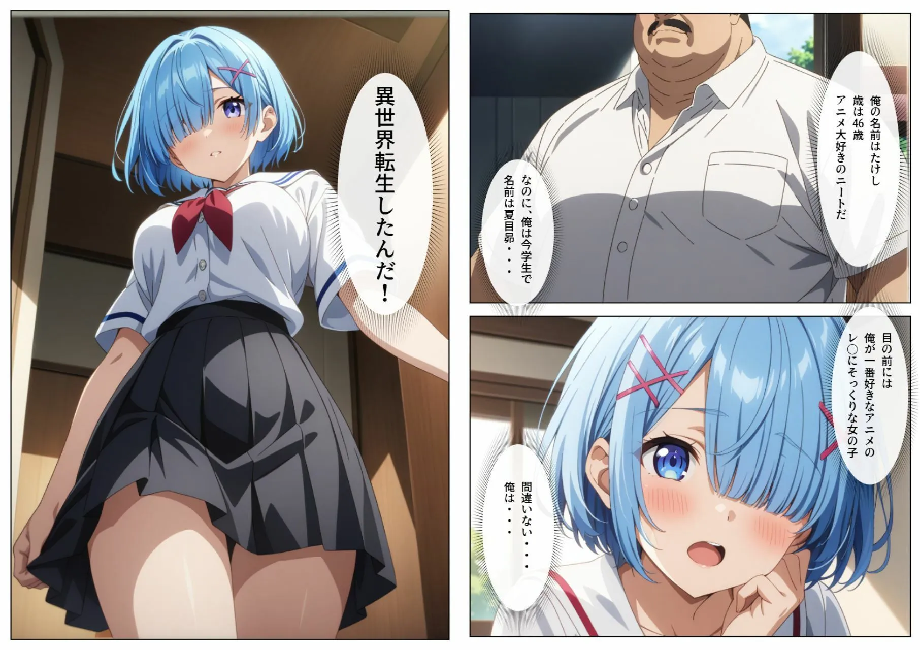 ストーリーは目が覚めると超人気アニメの大人気キャラが目の前にいて、メイド服じゃなく学生服姿で名前はレミだって言うのよ
