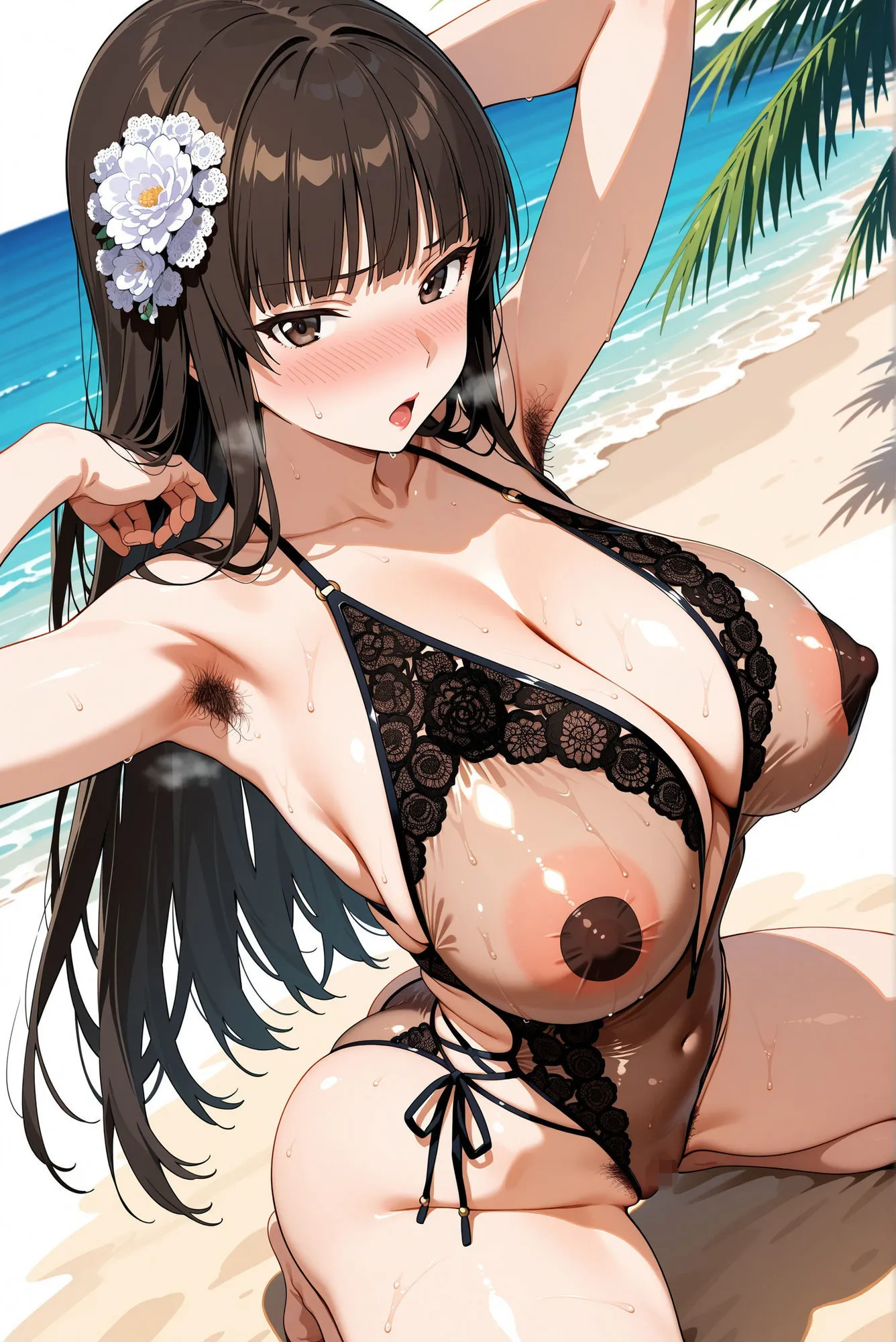 純愛エッチ小説を書きながら、悶々と頭に浮かんでくるとても物語には書けないマニアックな妄想が飽和状態(サチュレーション)に達してしまったので、AIイラストでそれを形にすることにしたという、しょうもないエピソードがサークル名の由来です。妄想サチュレーションです。初めての方ははじめまして。常連の方はいつもありがとうございます。さて本作は某戦車道西〇流家元のしほさんが、ホントの世界では絶対に見せてくれないセクシーなランジェリーや、媚び媚びなコスプレ姿などを、あなただけに見せてくれるというコンセプトのCG集となっております。謹厳そのものといったしほさんが、ホントの世界からしばし離れたことでほんの少しだけ肩の力を抜いて、これまで心の奥底にしまいこんでいたメスの本性を、戸惑いや羞恥に頬を染めつつも、あなただけに見せてくれるその痴態をぜひお楽しみください。ガ〇パンヒロインのお母さんが、あなただけに見せてくれるセクシー&媚び媚びコスチュームのお品書きは以下の通り。01.マイクロビキニ……50枚02、レースワンピース水着……50枚03.スクール水着……50枚04.スポブラ&スパッツ……50枚05.メイドコスチューム……50枚06.バニービキニ……50枚07.アイドルコスチューム……50枚08.ビスチェ……50枚09.娘の制服……50枚10.ニップレス……50枚以上になります。メイドやアイドルコスチュームなど、土下座しても絶対に着てくれなさそうなコスチュームも、妄想の中でなら身に着けてくれます。凛とした表情の大人の女性がそんな愛らしい衣装を身にまとい媚び媚びポーズをとる姿は、ほんのりキツくて、でもそのギャップがたまらなくエロいですよね。オトナっぽいセクシーなランジェリー姿もいいですが、個人的にはそんなギャップ狙いのコスチュームの方がいろいろ突き刺さりました。え、性癖ゆがみすぎてる?ありがとう、それは最高の誉め言葉です笑ともあれそんな感じで妄想全開にして制作した本作は、原作やしほさんのファンの方でなくても、熟女好きな方、きれいな女性のいろんなコスチューム姿が見たいという方にはご満足いただける内容になっていると自負しています。お値段お安めで設定させていただきますので、サンプルをご覧になって少しでも内容が気になった方は、ぜひお手に取っていただければと思います。そのうえでパラパラとお気軽にめくっていただいて、お気に入りの一枚を見つけていただければ、作者としてこれ以上の喜びはありません。画像枚数:各フォルダごとの枚数はお品書きをご覧ください。合計500枚画像解像度:2734×4096もしくは2720×4096(4Kサイズ)画像フォーマット:JPG※本作は他ダウンロードサイトさまとの併売になりますので、ご購入の際はご注意ください。※本作に出てくる人物は成人女性を想定しています。※本作はStablediffusionによるAI生成作品です。全てAI生成ツールにて作成しております(一部レタッチあり)。※一部手足にAIイラスト特有の破綻があるものを含みます。ご了承ください。※なるべく入念にチェックはしておりますが、万一画像の被りがあった場合はご容赦ください。
