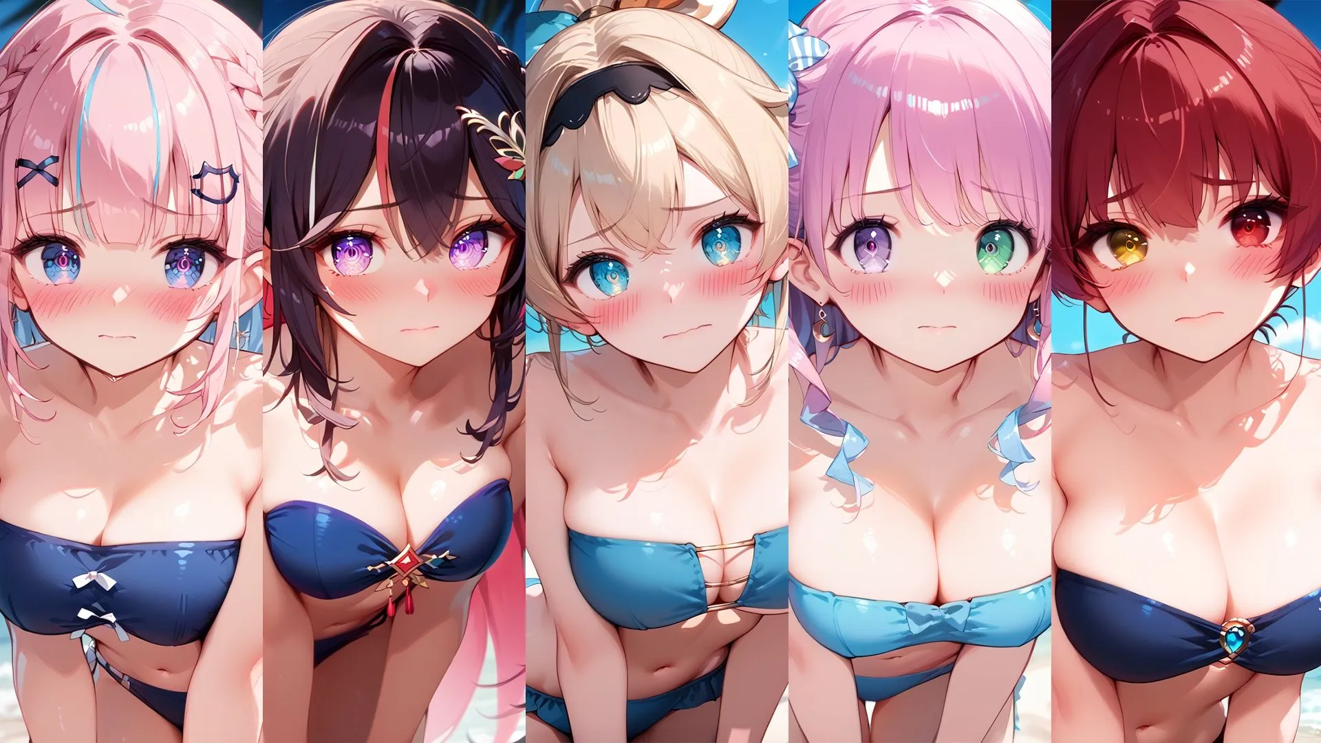 青い海と白い砂浜、真夏の太陽に照らされて肌がきらめくイラスト集だよ