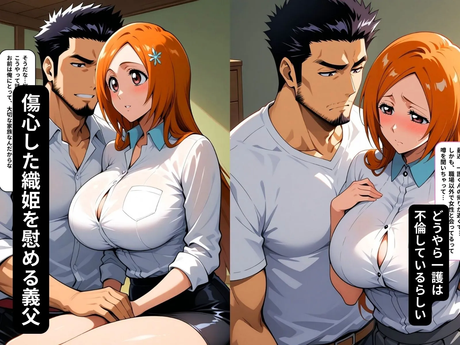 あかね【家族なんだから】この言葉に甘え、義父に相談したのが全ての始まりだったんだよ。一護の不可解な行動に揺れる織姫、真摯に支えようとする一心なんだけど、そこには罠が待っていたの