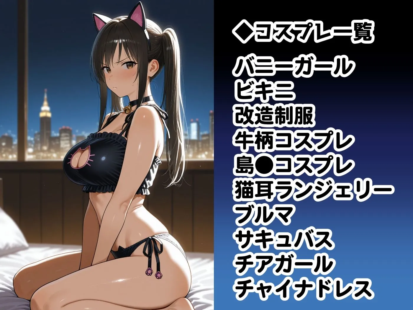 登場コスプレは改造制服(シュラッグ)ビキニ島●コスバニーガール牛柄コスサキュバスチアガール猫耳ランジェリーブルマチャイナドレスでしょ