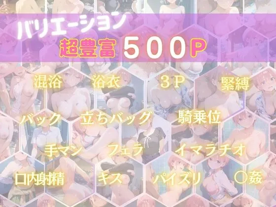 あかねこの作品は五等分の花嫁の中野一花のCG集で、制服姿で温泉に行ったら混浴で次々と男性に犯されていく話だよ