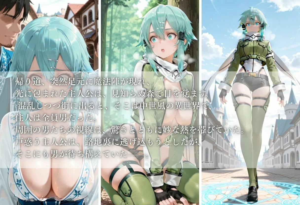 ※サンプル画像は本編より荒く、モザイクも大きくなっております。※アナルは全て無修正となります。※全てのイラストはAIが生成したものであり実在の人物とは一切関係ありません。【ストーリー】歩いていると突然足元に魔法陣が現れ、光に包まれた主人公は、見知らぬ森で目を覚ます。混乱しつつ街に出ると、そこは中世風の異世界で、住人は全員男だった。周囲の男たちの視線は、驚きとともに妙な熱を帯びていた。戸惑う主人公は、路地裏に逃げ込もうとしたが、そこにも男が待ち構えていた、、、。【シーン】1下校中2魔法陣の出現3森へ転生4街へ出る、男たちに見られる5路地裏で襲われる6服の上からボディータッチ7まんこを広げられる8手マン・クンニ9放尿10全裸で体を隠す11拘束12イマラチオ13性行為14事後15部屋で落ち込む16寝る17胸を触られ起きる18手マン・クンニ19イマラチオ20性行為21事後・虚な目※StableDiffusionを使用して生成しております。※技術的な制約やAIの学習データによって、細部に破綻や不自然さが含まれる場合があります。購入前に、そのことを理解し、同意した上で購入を検討していただくことをお願いいたします。※購入後の取り扱いに不備があった場合こちらは一切責任を負いません。※商用目的での利用・第三者への譲渡・転載等が発見された際には法的処置をとらせていただき、損害賠償請求を致します。