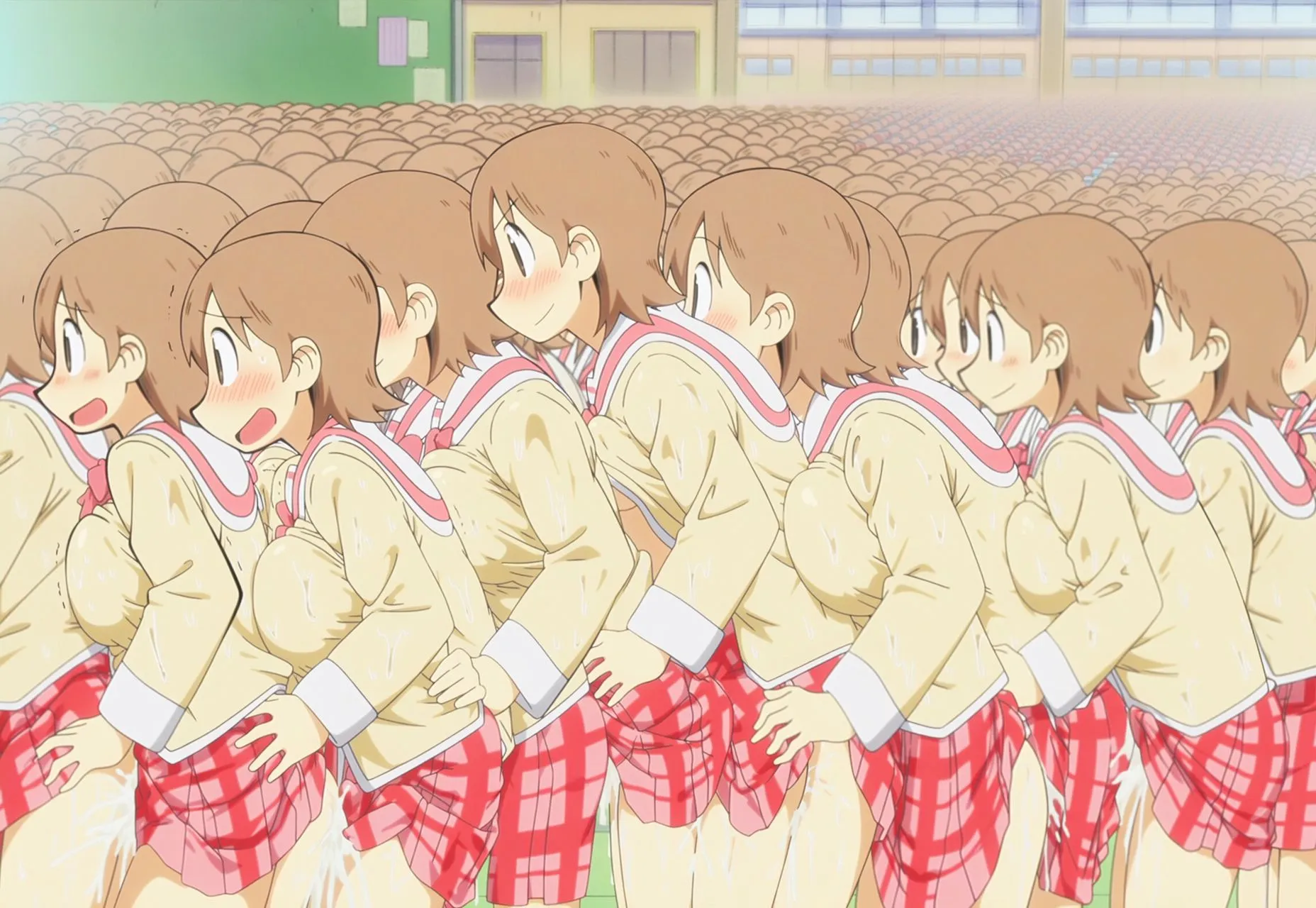 前面のメインキャラはもちろん、背景のモブに至るまで全て同じ容姿に拘りぬいてるでしょ