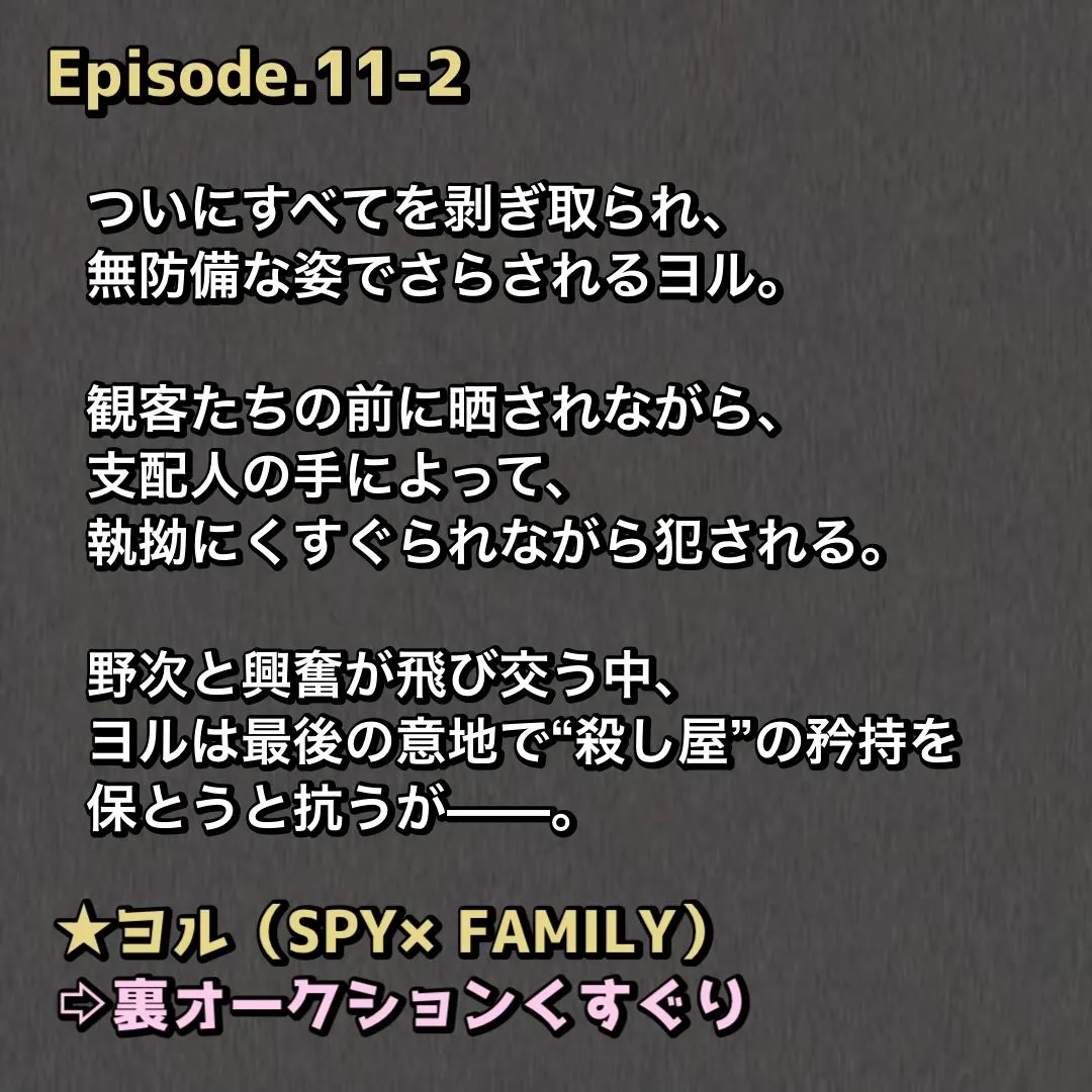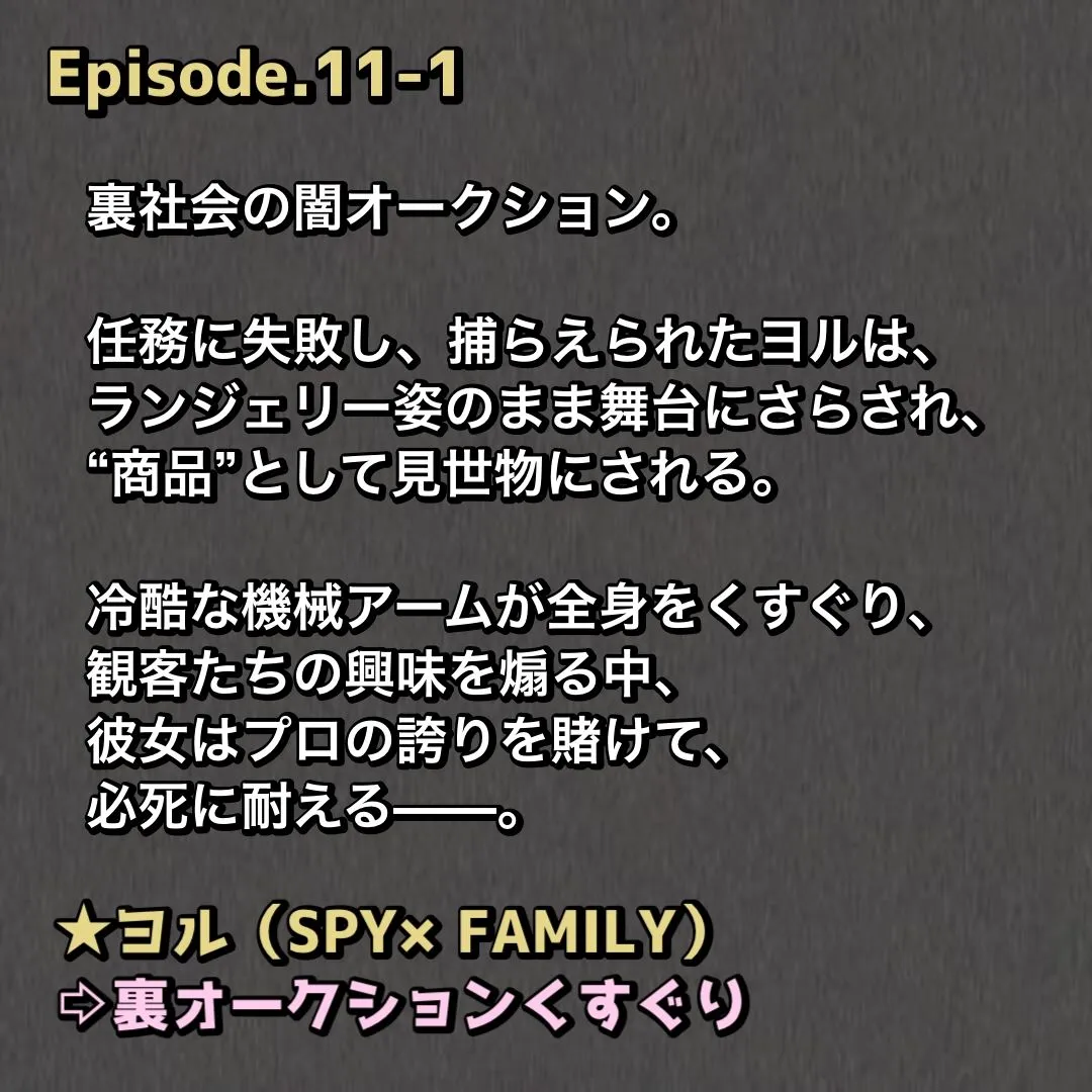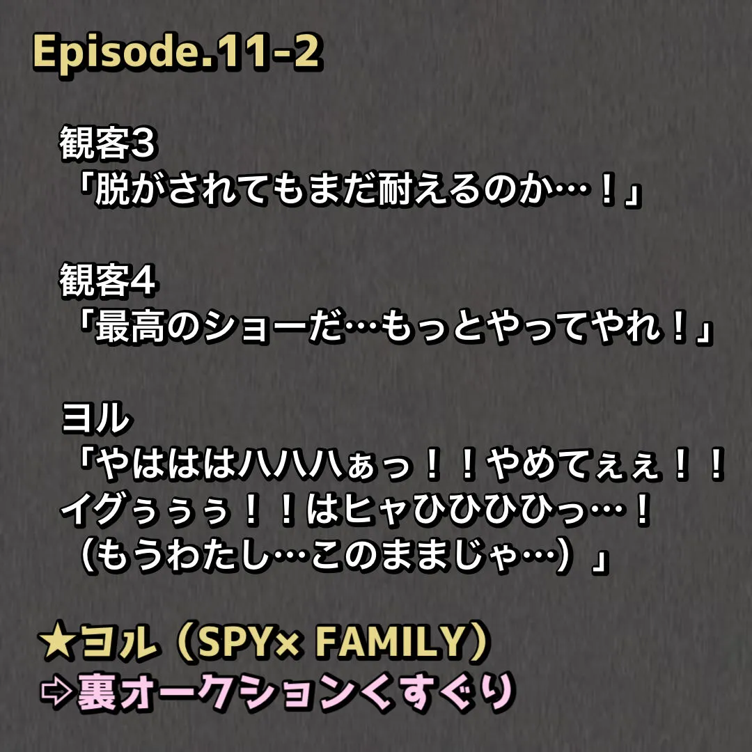 SPY×FAMILYのヨル=フォージャーはオークション舞台で公開くすぐりショーやくすぐりクンニ同時責め、殺し屋のプライドがイキ笑いで崩壊でしょ