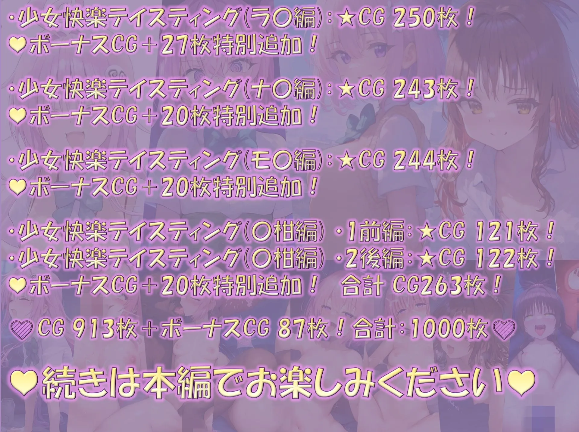 この作品は少女快楽テイスティング(T〇L〇VE〇シリーズ)の総集編で、5作品+特別ボーナスCG特典が含まれているお得なセット価格だよ